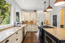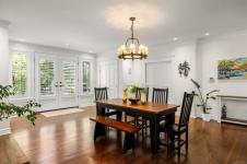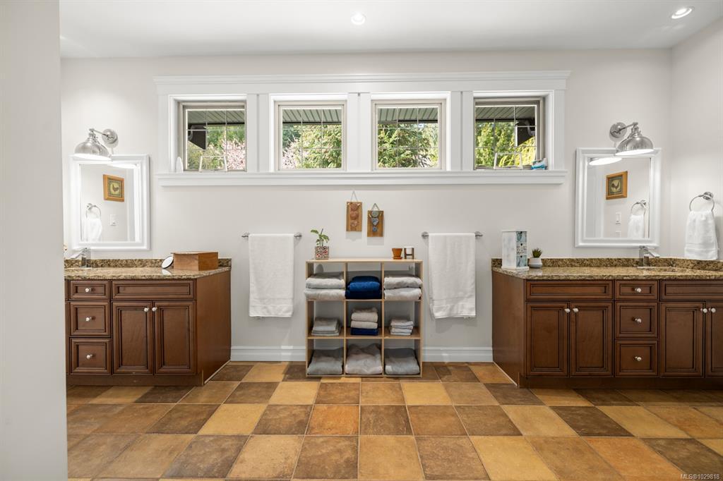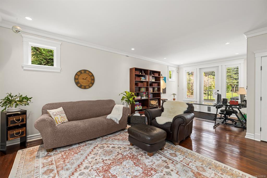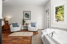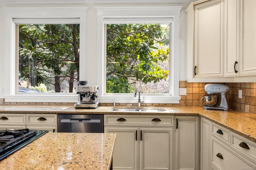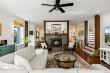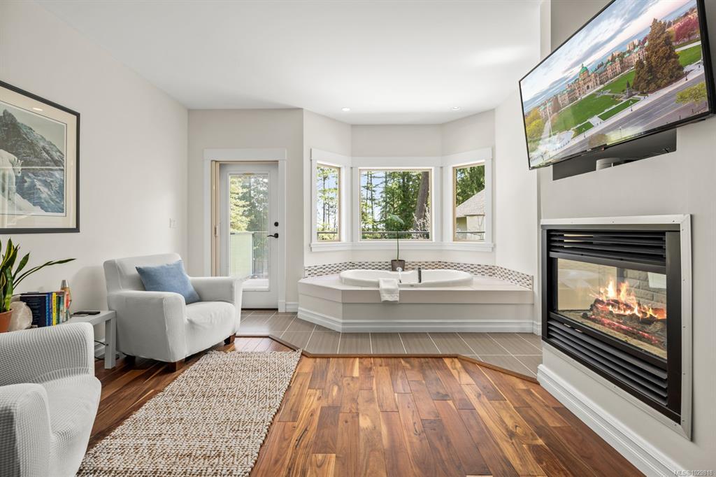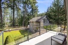 The moment you cross the bridge through the gates, you’ll feel instantly at ease. Life on River Road is as much about the setting as the home. The main level boasts a cook’s kitchen, spacious living and dining areas anchored by a striking stone fireplace, reclaimed floors, and French doors opening to a covered patio and outdoor fireplace. Upstairs offers four bedrooms plus an office, including a spacious primary with walk-in closet, gas fireplace, ensuite, and private deck. Above the double garage, a studio suite is ideal for guests. Step out your front door, passing the shared pond teaming with nature to access forested trails leading toward Bear Mountain passing a hidden waterfall. Enjoy the peace of a quiet community with room to breathe—no crowded streets or tight parking here. With low-maintenance mature gardens, raised beds ready for planting, and protected green space that ensures lasting privacy. All of this, just minutes from everyday conveniences. Come on by!