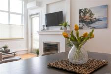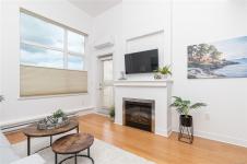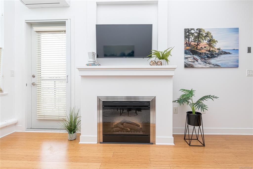 This fabulous top-floor 2 bed/2 bath condo offers a blend of comfort and style, featuring impressive vaulted ceilings and abundant natural light. The open-concept kitchen is perfect for entertaining, complete with granite countertops and stainless appliances, flowing seamlessly into the living and dining areas. Relax by the cozy fireplace or step onto the west-facing deck to enjoy the sunset views. Bamboo flooring enhances the main living space. The layout places bedrooms on opposite sides for added privacy, with the primary suite boasting an ensuite with soaker tub and separate shower. Bonus heat pump provides year round comfort. In-suite laundry, 8’10” ceilings, bike storage, separate storage, and common EV charging. Recreation just outside the doorstep with access to the Trans Canada Trail, and a short walk to Commonwealth pool. Built in 2009 this well maintained and managed Strata is just minutes away from Royal Oak Transit Exchange and Broadmead Shopping Centre. 2 pets welcome!