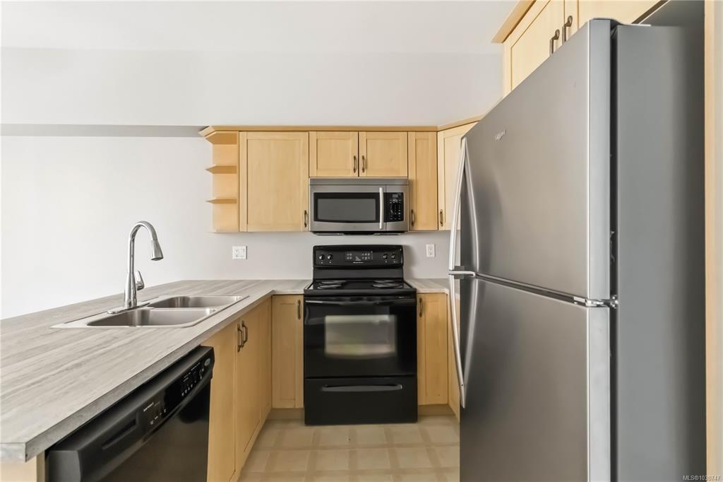 Welcome to Parkwood Manor! This is an excellent 2 bedroom 1 bathroom condo that faces South West with views of Royal Colwood Golf Course! The unit comes with 1 Under Ground Parking Stall and 1 Storage locker located directly in front of your parking stall for maximum convenience. Enter inside to find a very well-maintained home with your 2 spacious bedrooms, a 4 piece bathroom with bathtub, and a stacker washer/dryer. The kitchen area is spacious with a peninsula kitchen island and offers an open concept feel into your dining area and living room area. Off your living room you have your balcony with views of Royal Colwood Golf Course! Enjoy being located on a main bus transit area! You are also walking distance to all amenities including; Westshore Recreation Center, newly built University on Goldstream Ave, Shopping, Medical Clinics, Dentists, Restaurants, Pubs, Galloping Goose Trail, Walking Trails and so much more! Quick Possession is possible. Do not wait, book your showing today!