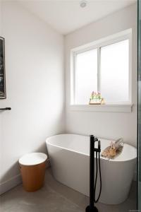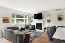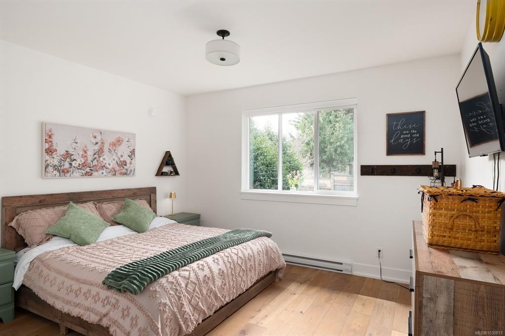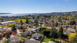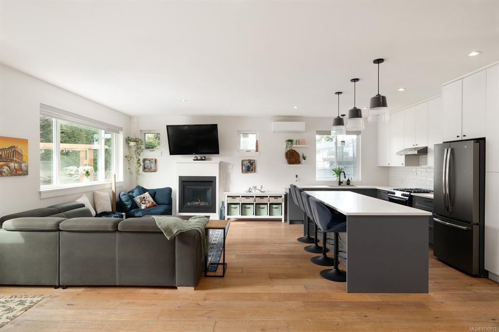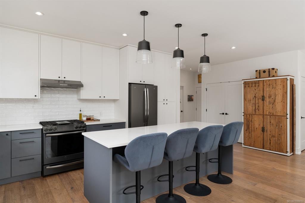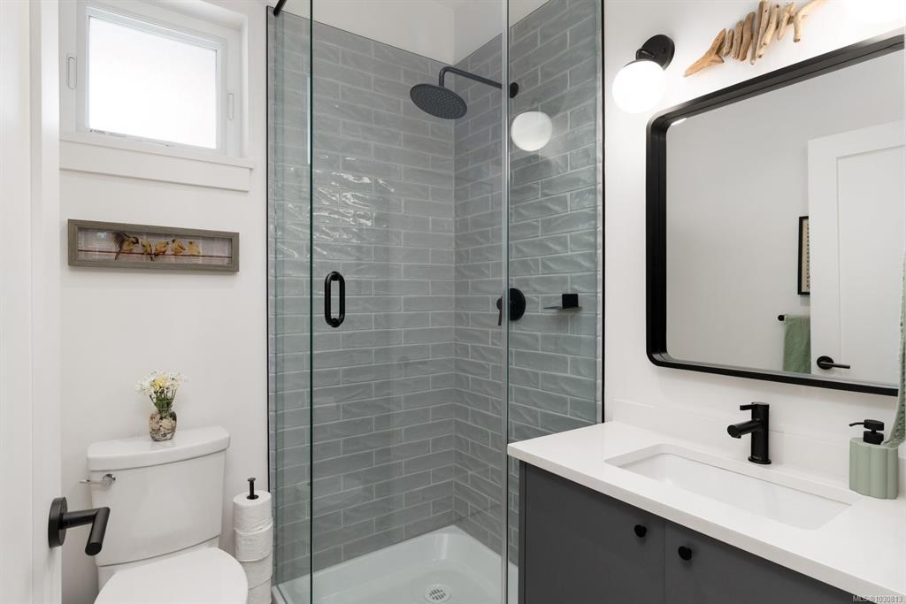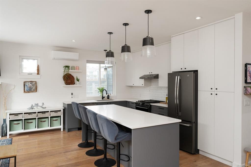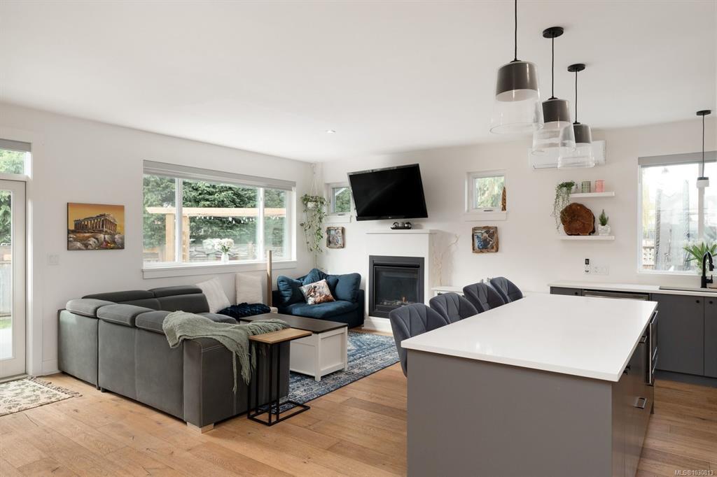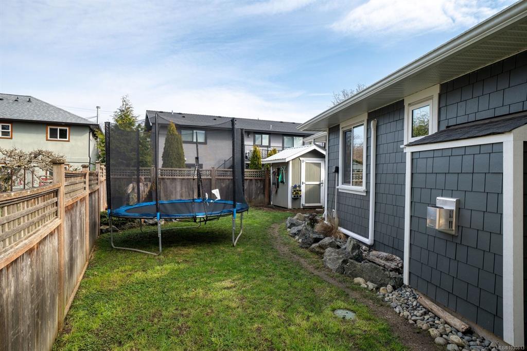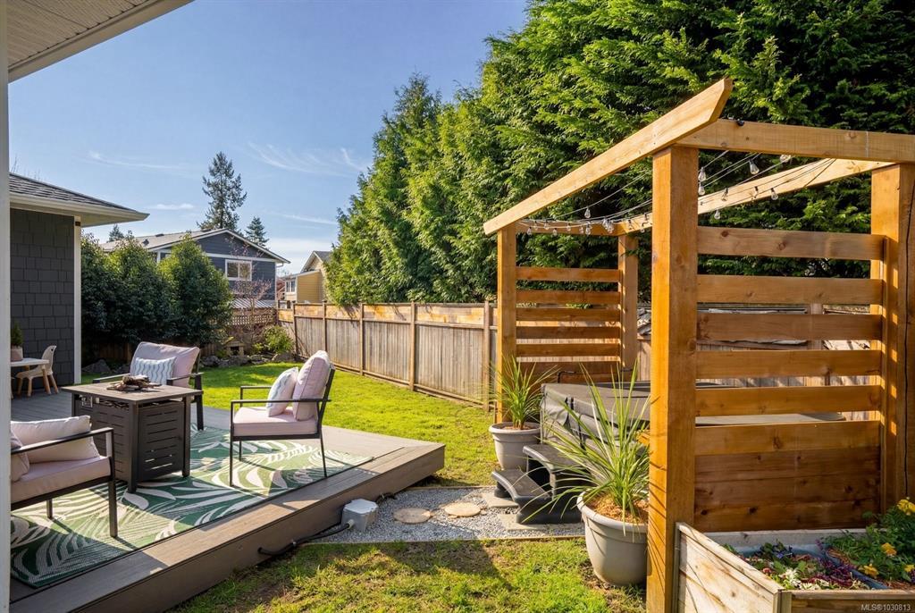 Nearly new (2020) 1,456sqft rancher tucked away on a quiet, private lot just minutes from all that Sidney has to offer. This 2 bed/2 bath + studio space home showcases charming West Coast design & an inviting open-concept layout w/quality finishes throughout. Enjoy a bright living space w/9ft ceilings, large windows, gas fireplace & gourmet kitchen featuring black stainless appliances & oversized island w/quartz countertops. The primary bdrm offers a spa-inspired ensuite & generous walk-in closet. Thoughtful upgrades include a heat pump for year-round comfort & a versatile studio space w/additional storage. Step outside to a fully fenced, easy-care yard w/private patio, hot tub & pergola. Engineered hardwood flooring, tiled bathrooms, hot water on demand & ample driveway parking. Situated on a private panhandle lot, close to schools, parks, shops & the Town of Sidney, this is a fantastic opportunity to enjoy modern, low-maintenance living in a desirable, family-friendly neighbourhood.