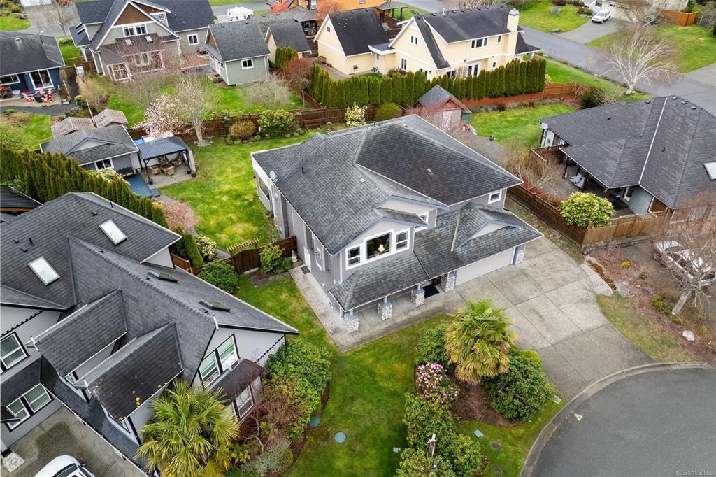 Tucked away in a quiet cul-de-sac in the highly sought-after Whiffin Spit neighbourhood, this beautifully maintained 2004-built home offers over 2,900 sq/ft of versatile living space w/ 5 bed + den, & 3 bath. Main level features a classic kitchen w/ SS appl., family room complete w/cozy fireplace & adjoining eating area. French doors open to an entertainment-sized deck. Formal dining & living add timeless charm w/second fireplace, vaulted ceiling, & hardwood floors. Great sized BDRMs w/ample windows. Retreat like primary suite, offering a spa-like 4-piece ensuite & WIC. Oversized 4-piece main bath & conveniently located laundry on main. The bright den is wrapped in windows. The lower level hosts a well-designed 2-bedroom suite featuring it’s own living room w/fireplace, slider to a covered patio, an eat-in kitchen w/abundant storage, a 4-piece bath & separate laundry. Set on a level, landscaped & fully fenced .24-acre lot including a 10x10 workshop/studio. This is a truly special home.