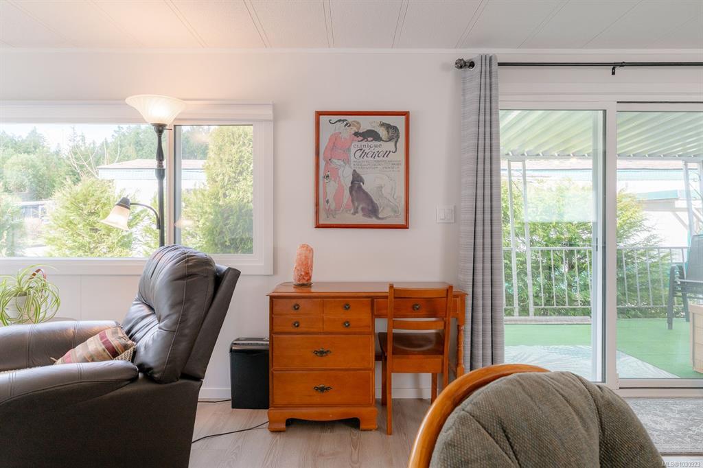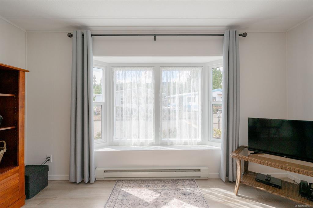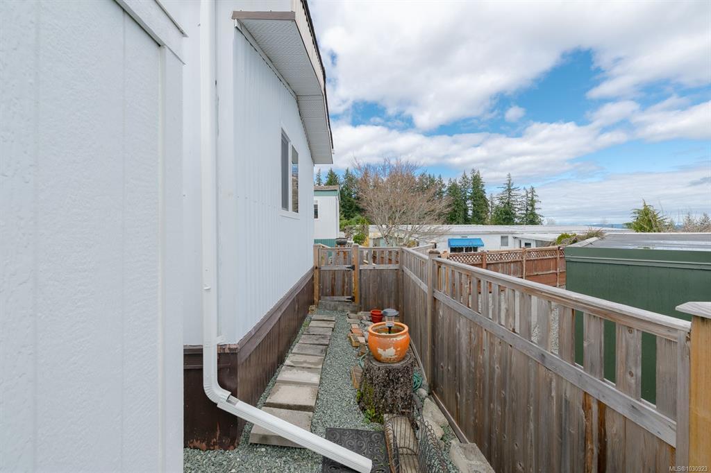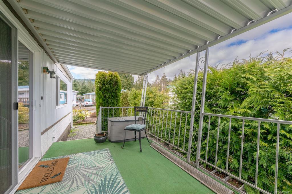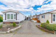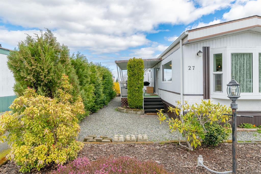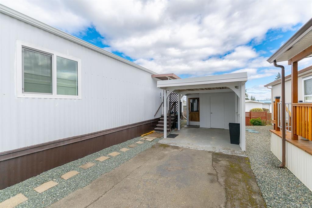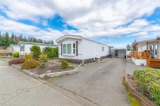 Town and Country is one of the most desirable 55+ mobile home parks on the island and only minutes to amenities. It offers an outdoor swimming pool, a clubhouse with games room, TV, kitchen, bathrooms and laundromat. two small pets are welcome on approval.This bright and clean Mobile home has two bedrooms and one 4pc bathroom, 16x8 covered deck, single carport with attached storage sheds, private low maintenance yard with a little garden spot for your green thumb. Recent updates: updated kitchen, new roofs, new windows and patio door, new pleated shades and curtains, new fridge, new pex plumbing lines and hot water tank 2023, new laminate and vinyl floors, freshly painted. Washer/dryer hookups to choose your own or use the community laundromat. A real gem tucked near the back of the park with FOREST and OCEAN views! Enjoy the magnificent sunrise over the ocean while sipping your morning tea. Nothing needs to be done but to enjoy your new peaceful life! PRICED TO SELL!