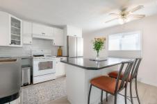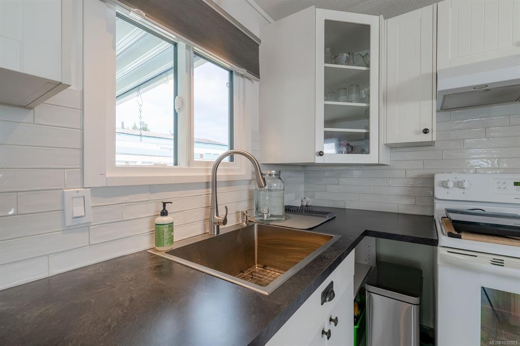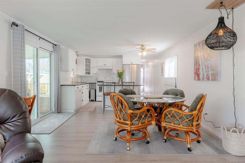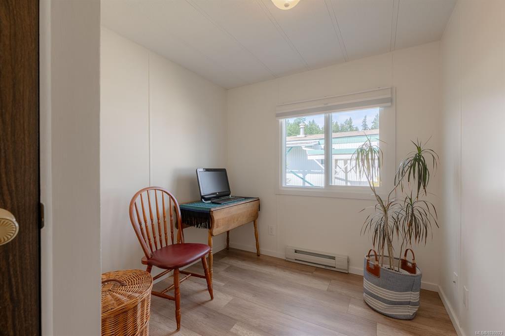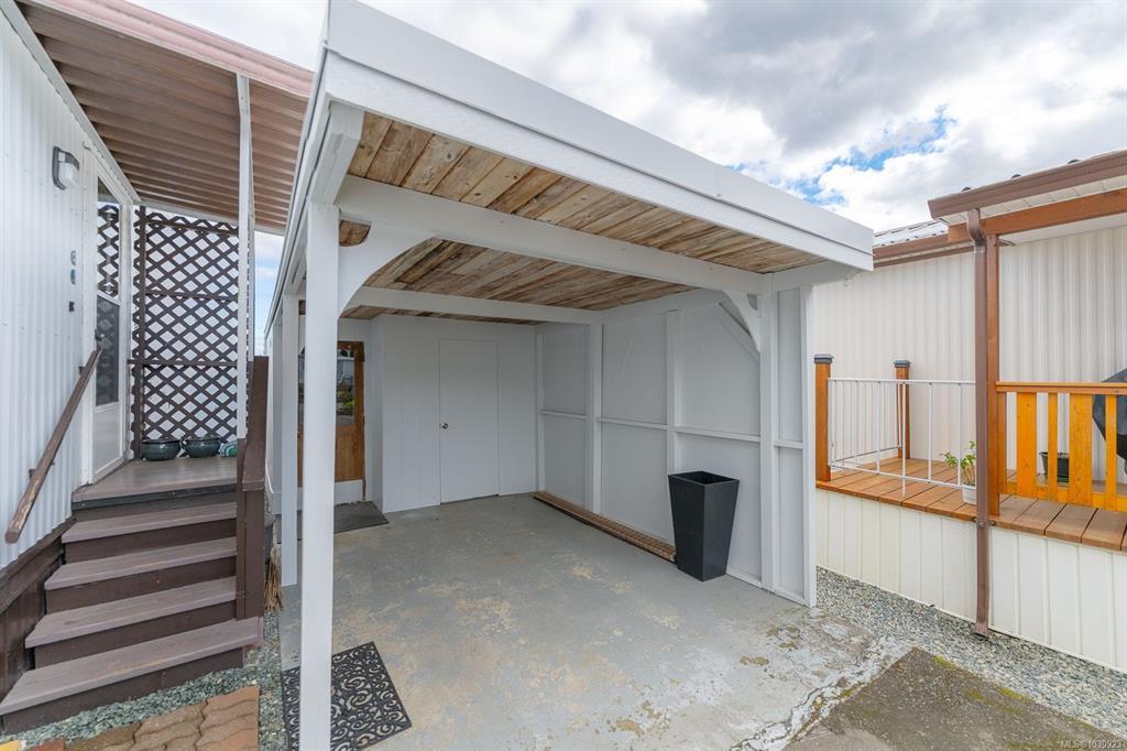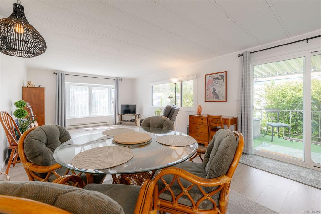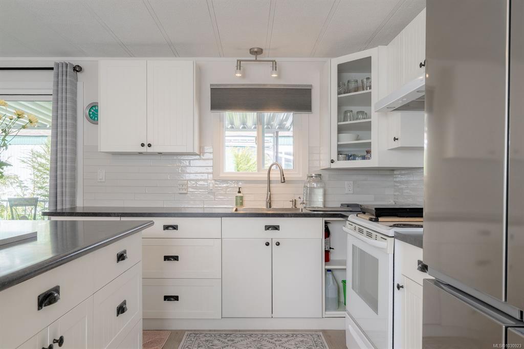 Town and Country is one of the most desirable 55+ mobile home parks on the island and only minutes to amenities. It offers an outdoor swimming pool, a clubhouse with games room, TV, kitchen, bathrooms and laundromat. two small pets are welcome on approval.This bright and clean Mobile home has two bedrooms and one 4pc bathroom, 16x8 covered deck, single carport with attached storage sheds, private low maintenance yard with a little garden spot for your green thumb. Recent updates: updated kitchen, new roofs, new windows and patio door, new pleated shades and curtains, new fridge, new pex plumbing lines and hot water tank 2023, new laminate and vinyl floors, freshly painted. Washer/dryer hookups to choose your own or use the community laundromat. A real gem tucked near the back of the park with FOREST and OCEAN views! Enjoy the magnificent sunrise over the ocean while sipping your morning tea. Nothing needs to be done but to enjoy your new peaceful life! PRICED TO SELL!