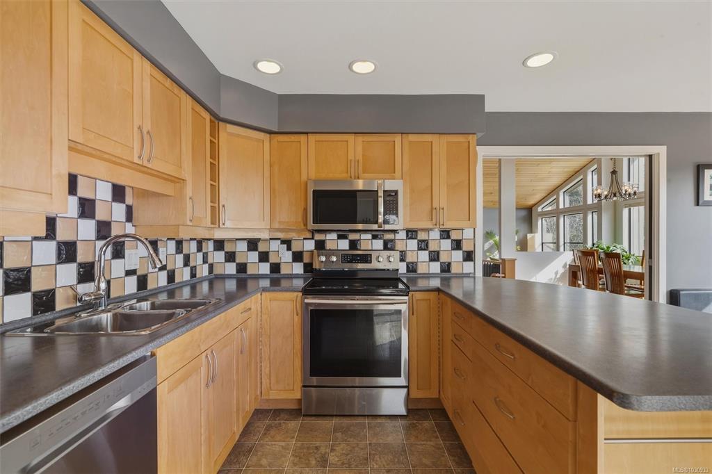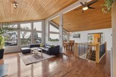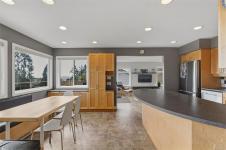 Perched high in the prestigious Panorama neighbourhood, this expansive West Coast home offers over 3,500 sq ft of versatile living space with sweeping city views. The bright main level features an open-concept layout with vaulted ceilings, hardwood floors, large windows, and a spacious kitchen with ample cabinetry and a generous peninsula—perfect for everyday living and entertaining. A cozy wood-burning stove adds warmth and character to the main living area. Three generous bedrooms include a spacious 14' x 14' primary retreat complete with its own private ensuite. Enjoy outdoor living on the sun-soaked deck with a private hot tub, ideal for relaxing and taking in the views. The lower level includes a large rec room for the main home, plus a 2-bedroom suite with its own entrance, laundry, and living area—currently tenanted and perfect for extended family or income. A fully fenced yard and a double garage complete this well-maintained home in Panorama’s most sought-after locations.