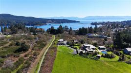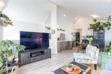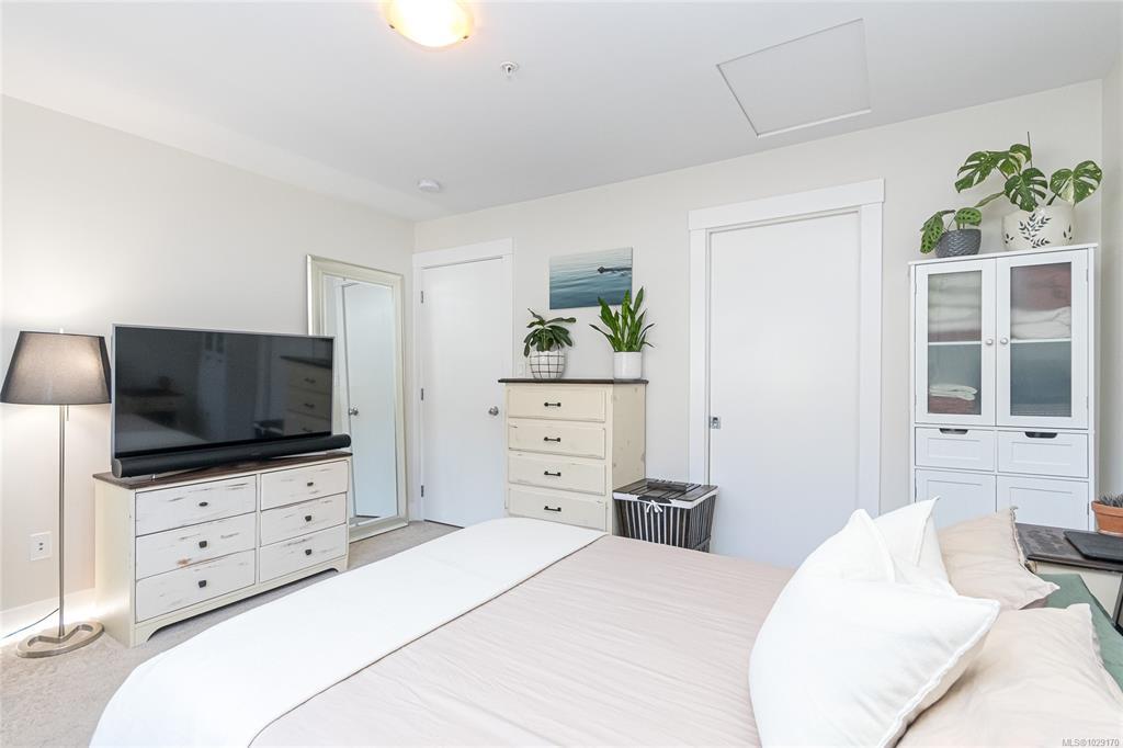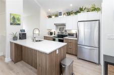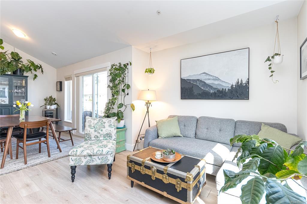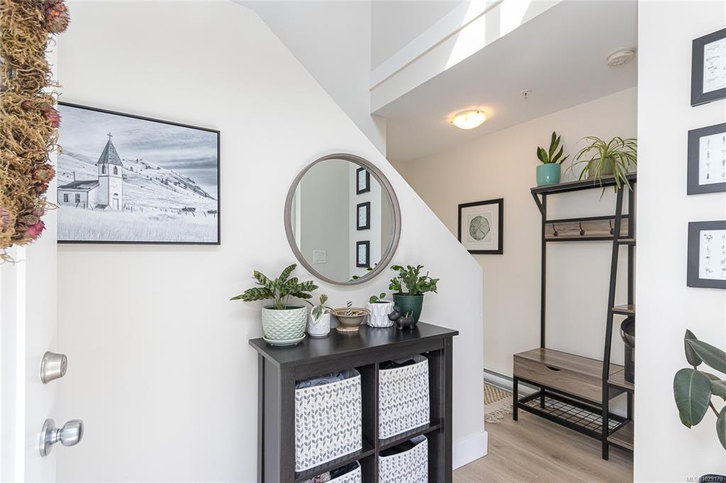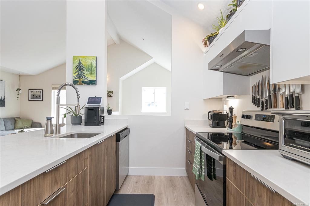 Step into this fantastic one-bedroom townhouse in a quiet residential neighborhood in Sooke Village. The spacious open-concept floor plan features a modern kitchen with two-toned cabinets, quartz countertops, stainless steel appliances, and a breakfast bar. Large windows fill the home with natural light, highlighting vaulted ceilings, separate living and dining areas, and a private balcony perfect for relaxing or entertaining. The generously sized bedroom accommodates a king bed and offers direct access to a large bathroom with a substantial closet. Additional highlights include in-suite laundry, a pantry, quality flooring, an open stairwell, ample storage, and an attached private garage. This well-managed strata allows children, pets, and rentals. Centrally located, you’re steps from the municipal trail system, a short stroll to the ocean, or the vibrant village center with the beloved Stick in the Mud Coffeehouse, Sooke Brewing Co., restaurants.