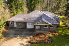 This peaceful estate featuring a 3bd/3bth 1851sq/ft rancher, is situated on a private rural 1.3 acre lot just minutes to town. The heart of the home features a bright, open living and dining area anchored by a cozy woodstove insert, flowing seamlessly into a well-appointed kitchen, ideal for everyday living and entertaining alike. With 9’ ceilings, a thoughtful layout, and inviting indoor-outdoor connection, this home blends comfort and function in all the right ways. The primary suite is a true retreat with a generous 4pc ensuite and walk-in closet, while two additional bedrooms provide flexibility for family or guests. The grounds have plenty of room for all your ideas. The 2nd & 3rd garage bays have been converted to living space as an additional living room and office. They could easily be returned to their original configuration for your project car. The other sq/ft measurement is the unpermitted converted garage spaces. The CR-1 zoning allows for a carriage home or shop as well.