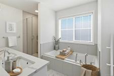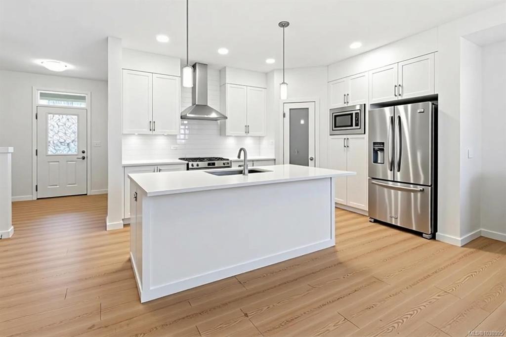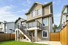 Welcome to this beautifully upgraded Westwick home in the heart of Royal Bay, offering over 3,100 sq/ft of thoughtfully designed living space. Open-concept main level filled w natural light, featuring a chef-inspired kitchen w quartz counters, full-height cabinetry, under-cabinet lighting, spacious island & walk-in pantry. Dining area flows seamlessly into the inviting living room anchored by a modern gas fireplace & opening onto the private rear deck, while a dedicated office, powder room & mudroom add everyday functionality. Upstairs, the spacious primary suite is a true retreat w a luxurious 5-piece ensuite, plus two additional bedrooms, full bathroom & flexible family room. Versatile walkout lower level offers a large rec room (kitchen roughed-in for legal suite), bedroom, full bathroom, laundry hookup & separate entrance—ideal for extended family/legal suite potential. Set on a sunny lot with a premium vinyl deck, easy-care yard, hot water on demand, HRV & detached double garage.