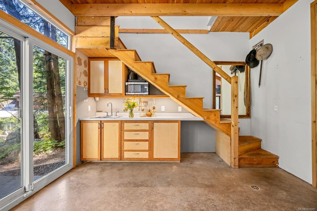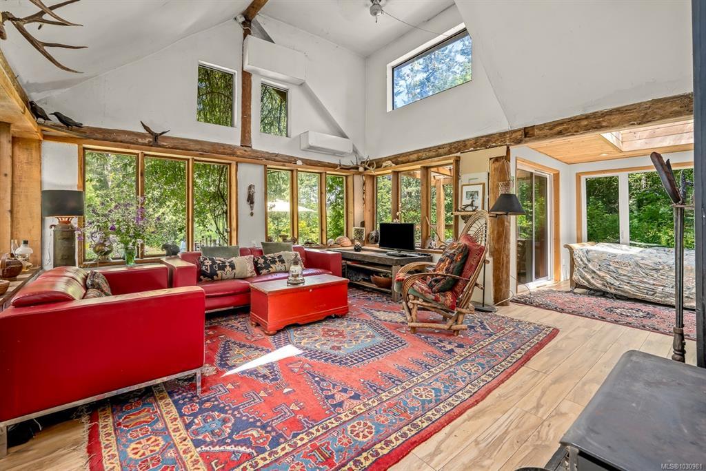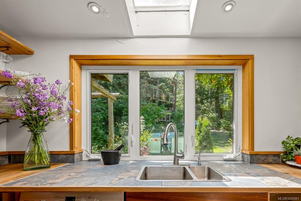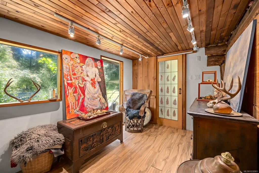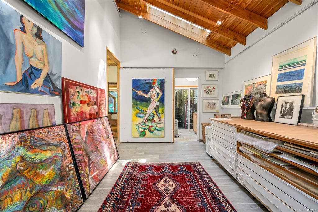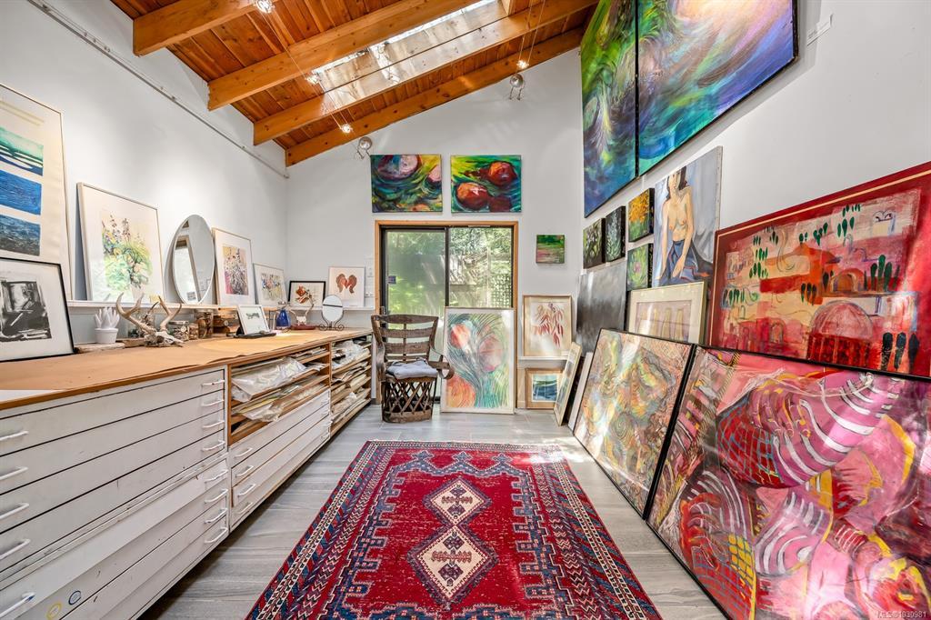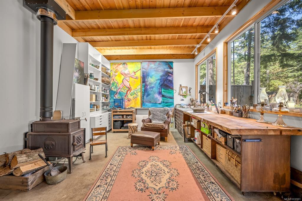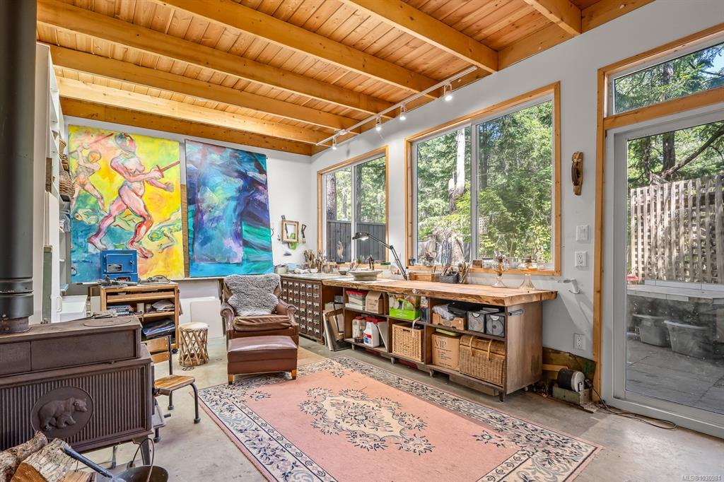 This versatile 0.591-acre property blends natural beauty with practical space, making it ideal for artists, gardeners, or families seeking a peaceful and/or active lifestyles. Terraced landscaping offers privacy, with beautiful flowering gardens, a tranquil pond, mature fruit trees, and greenhouses. The main residence features vaulted ceilings in an open-concept layout, a recently updated kitchen, and a heat pump. Fireplaces offer cozy living in winter while outdoor spaces provide settings for summer family gatherings. The detached artist’s studio is a modern, well-built, private space perfect for creative work or a home-based business, with its own entrance and parking. Additional features include a drilled well, two cisterns, a rainwater collection and septic systems. Whether you're nurturing creativity, running a home business, or looking to enjoy the many beaches, mountain bike and hiking trails—this property offers flexibility, functionality, and room to grow.