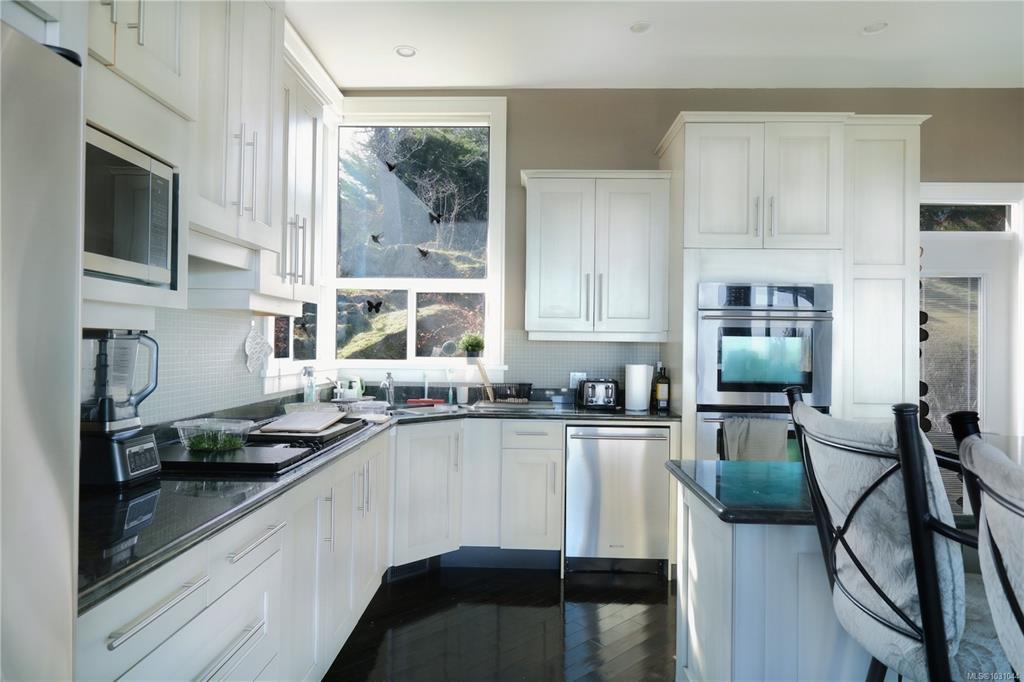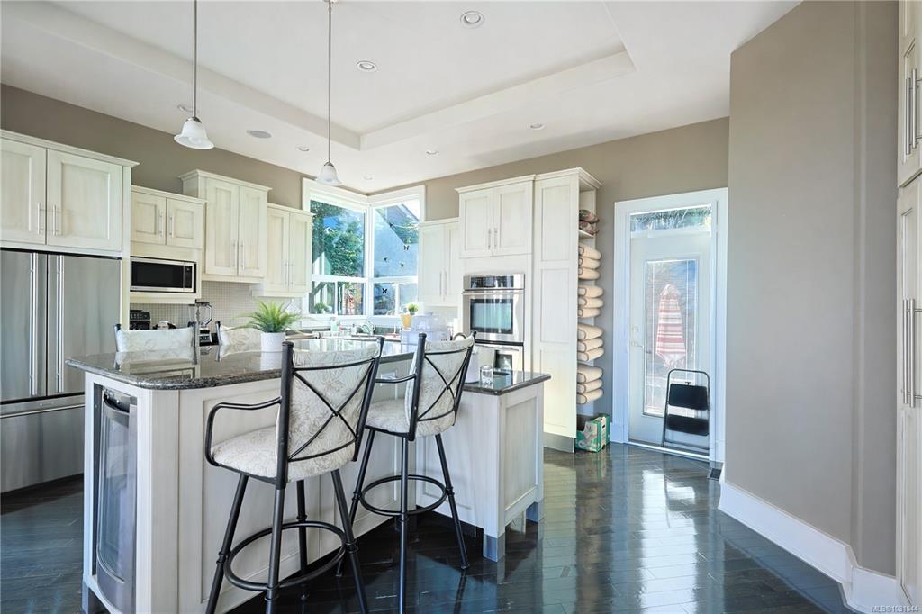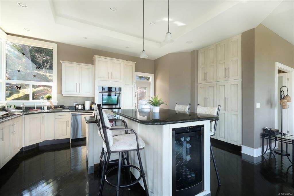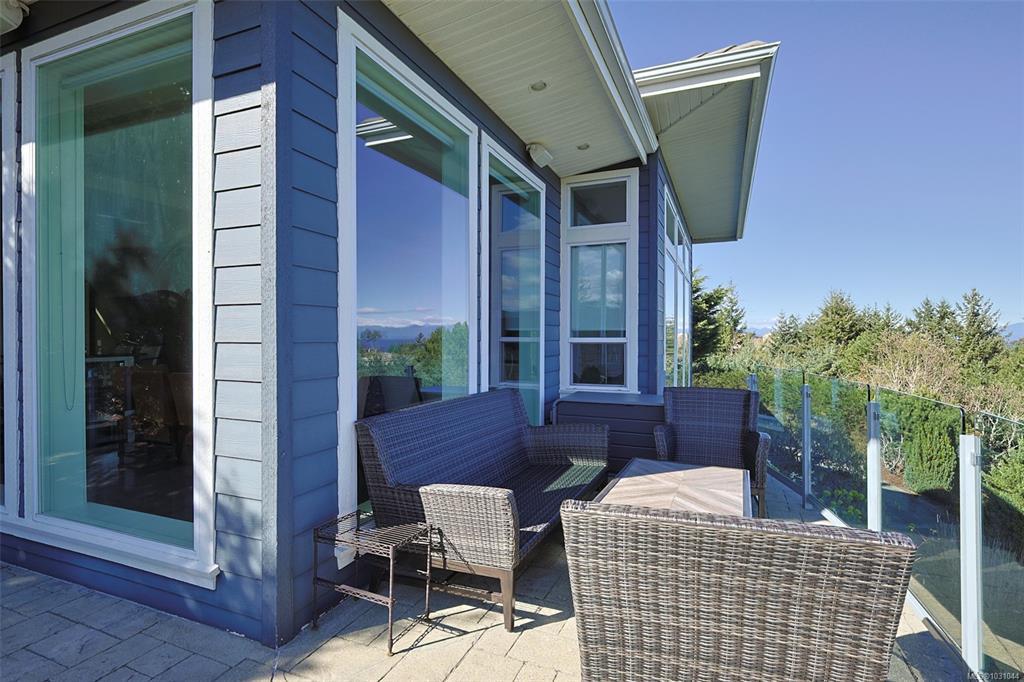 Perched in the prestigious Fairwinds community, this exceptional residence captures sweeping ocean, island & golf course views from a private 0.38-acre setting. Offering over 3,000 sqft of thoughtfully designed living, the home features elegant main-level living w/ soaring ceilings, expansive windows and an open-concept great rm w/ gas fireplace. The granite kitchen flows seamlessly into the dining and living areas, creating an inviting atmosphere for entertaining and everyday comfort. The generous primary retreat includes a spa-like ensuite w/ in-floor heat, private balcony access & breathtaking outlooks. Additional bdms offer flexibility for guests, family/office use, while the lower level adds function w/ extensive storage, workshop space and an oversized garage. Sun-soaked terraces and view decks complete this impressive W. Coast offering, moments from the golf course, rec centre, trails, beach access & Schooner Cove Marina. All measurements are approximate, to verify if important.