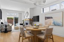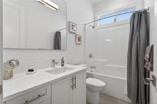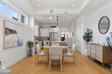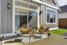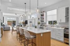 Welcome to the Show home model of beautiful Laurel Park. This gorgeous home is situated on the quiet side of this park. Very elegantly thought out, this home is full of high end finishing, tall doors, tall ceilings and a gorgeous kitchen with a large, extended island, new appliances, bar-fridge and ample cupboard space. The spacious dining room is very complimentary as it sits right between the kitchen and cozy living room, which is great for large gatherings. The grand sized primary bedroom has a spacious walk-in closet and a very bright clean ensuite bathroom with heated floors and large walk-in shower with it's own built-in shower bench. The laundry room is perfectly concealed to maximize space and luxurious living. Nice, clean single-car garage with a drawstring pull-down attic for extra storage. Enjoy maintenance free relaxation in Laurel Park's quietest and most private backyard. This home is situated very near to all amenities, golf courses and the beach