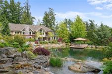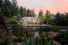 Luxury and tranquility meet at Rosebank Estate, a private 2.7-acre gated property just 15 minutes from Downtown. This 7,000+ sq ft executive home offers exceptional single-level living with soaring 9-foot ceilings, in-floor heating, forced-air A/C, and sun-filled south-facing spaces. The main level features a grand chef’s kitchen, formal dining and living rooms, a formal office, and a luxurious primary suite with dual walk-in closets, heated floors, spa-inspired ensuite, and private deck—all designed for effortless everyday living. The lower level adds premium amenities including a state-of-the-art theatre, live-edge entertainers’ bar, sunroom, and a 2-bed, 2-bath legal suite ideal for guests, extended family, or income potential. Multiple flex spaces, two finished double-car garages, and meticulously designed and landscaped grounds complete this rare offering. A sophisticated blend of privacy, comfort, and thoughtful design. A detailed information sheet is available upon request.
