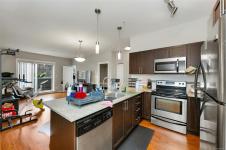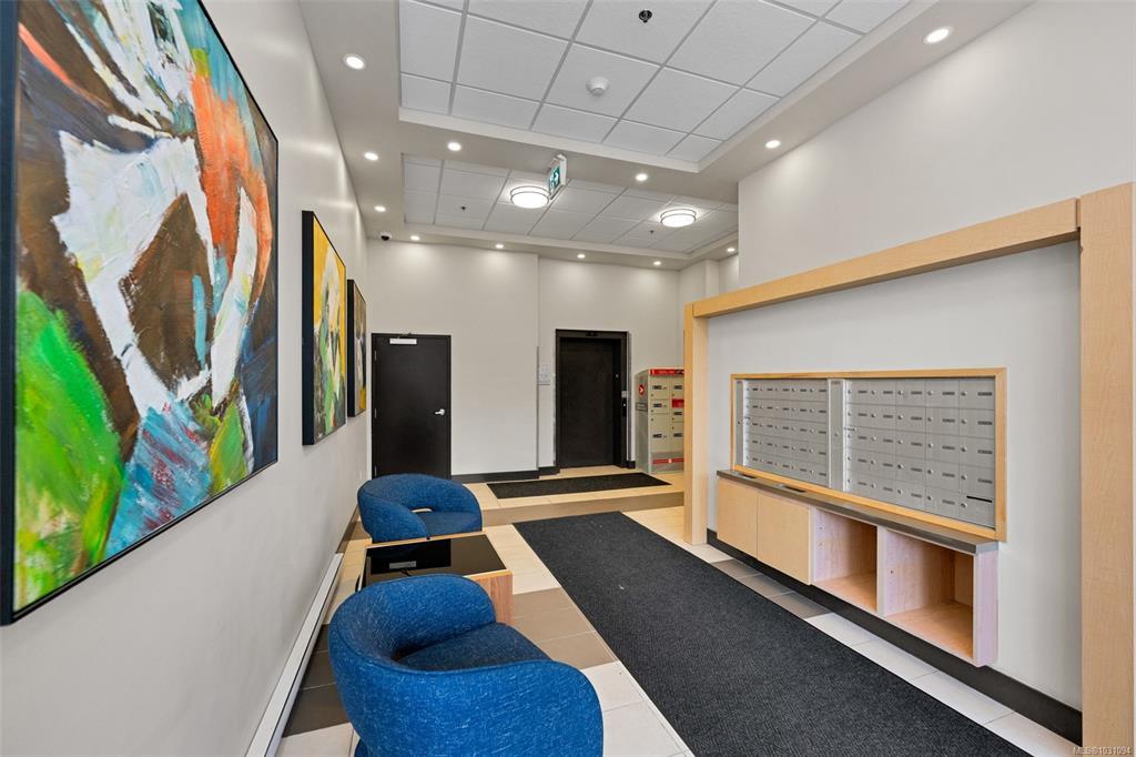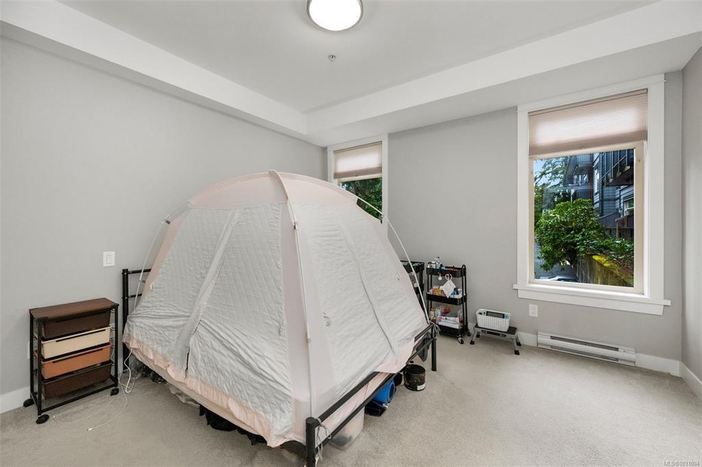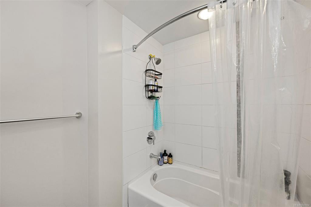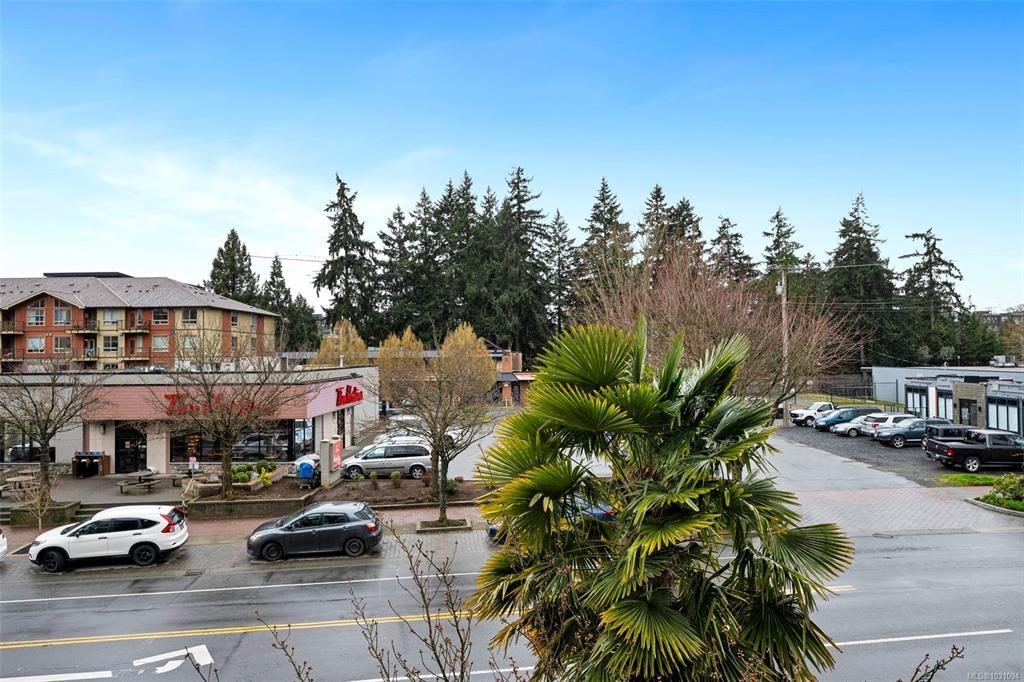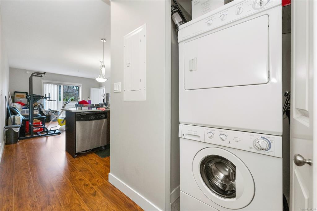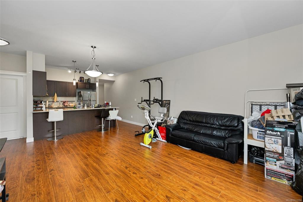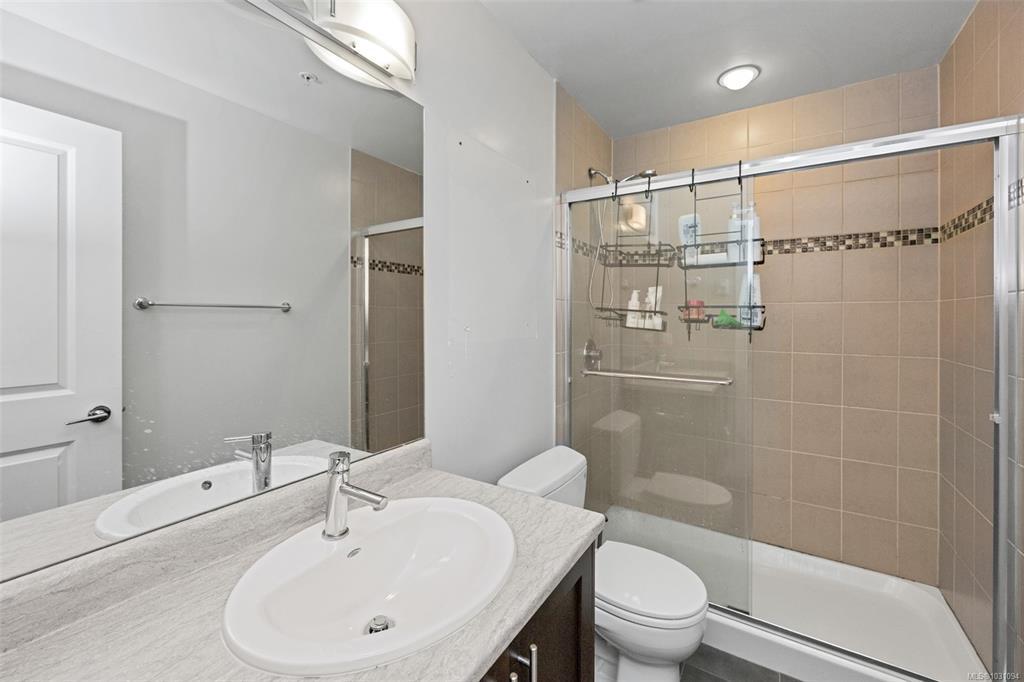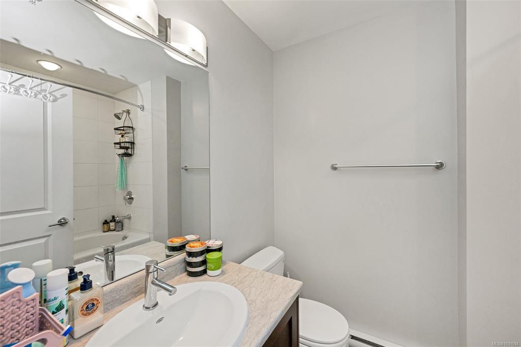 What an opportunity to own a large 2 Bedroom plus Den in the heart of Langford. This home was completely rebuilt in 2022 and it shows. It has over 1000 sq ft of living space - a primary bedroom with a 4 piece ensuite, a second bedroom, a large den (a possible 3rd bedroom?) and a second 4 piece bathroom. The large living room and dining area invites your designing eye and the wrap-around, fully-equipped kitchen with stainless appliances, modern cabinetry, quartz counters (with overhang for bar seating), tiled backsplash and double sink is just waiting for your gastronomic flair. Off the living room is the south facing balcony, offering privacy on those sunny summer days. This home has loads of closet space and insuite laundry. This condo comes with 1 above-ground, secured and covered parking space. This well run strata allows 2 dogs or 2 cats with weight limits and offers bike storage. Central Langford living at its best - Walk Score rates it as a Walking and Cycling Paradise!