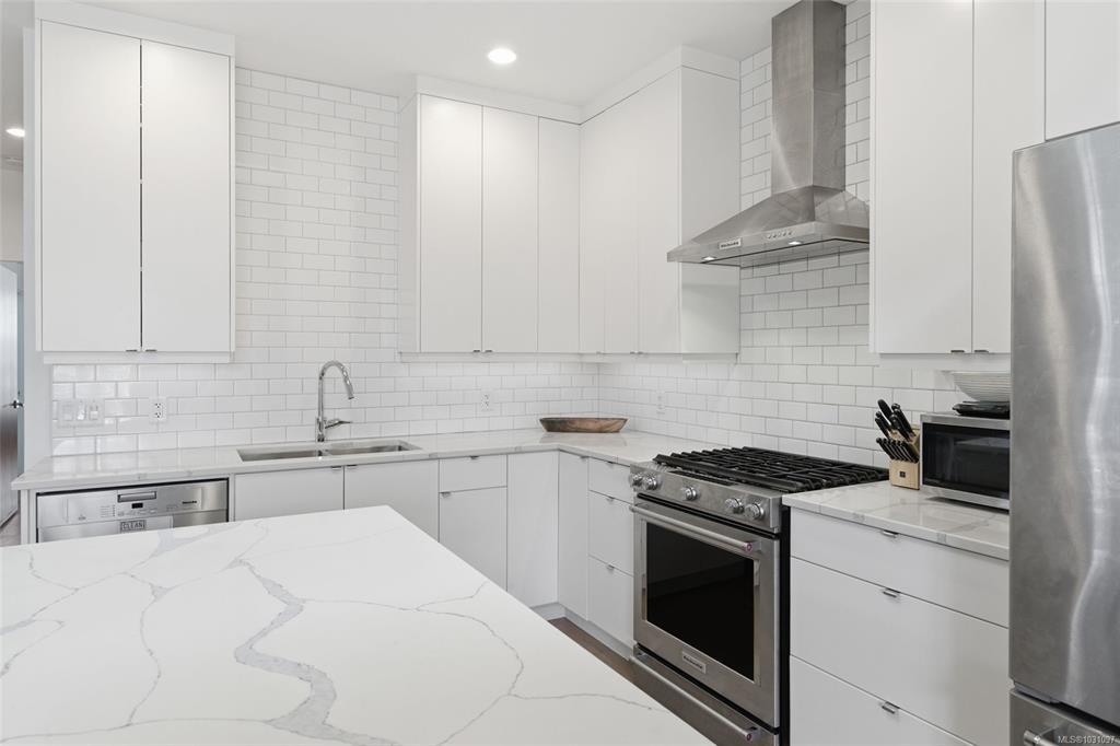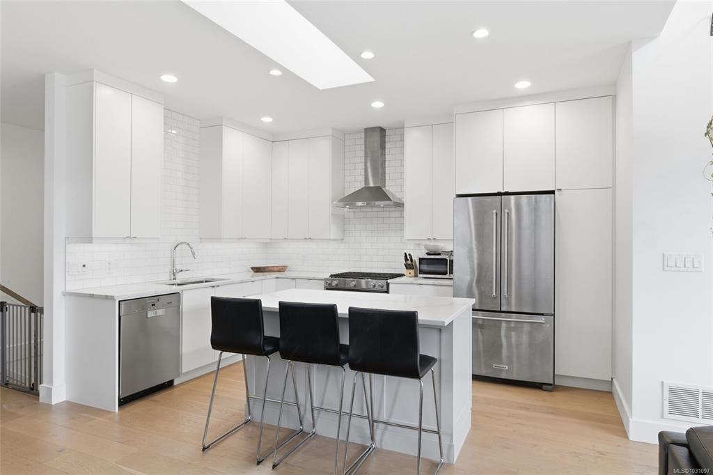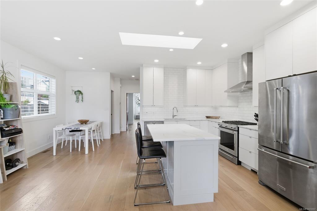 A one-of-a-kind offering in one of Nanaimo's best neighbourhoods. Thoughtfully crafted with a custom architectural vision, offering a perfect blend of style and functionality. From the moment you step inside, the home showcases a clean, modern feel with high-end finishes throughout. The main living area is designed to impress, featuring soaring 15-foot ceilings and large windows that flood the space with natural light, creating an open and welcoming environment. The layout flows effortlessly into a beautifully appointed kitchen with upscale stainless steel appliances, quartz countertops, and a spacious island ideal for gathering and entertaining. This 3 bed 3 bath no strata fee home is sure to impress and won't last long!