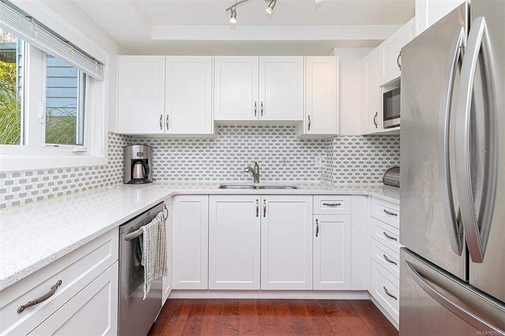 Tucked away at the end of a quiet no-through road & set on nearly half an acre, this unique proeprty offers exceptional privacy with mature gardens & a peaceful, park-like setting. Your new home has been thoughtfully updated with a stylish kitchen featuring s/s appliances & shaker cabinetry, an updated bathroom, gorgeous Brazilian cherry engineered floors, & vinyl windows. Expand your living space onto your large sunroom overlooking lush, private greenspace, creating a tranquil, countryside feel in the heart of the city. Located a short stroll to Cook Street Village, downtown, & just steps to Langham Court Theatre, this well-managed strata welcomes pets & rentals, & includes a dedicated parking space, additional off-street parking option, & a storage locker. A truly special offering—modern comfort meets historic charm in an unbeatable location. Bonus: Heat included in the strata fee. Come see for yourself this unique, updated piece of history, peacefully located in the heart of it all.