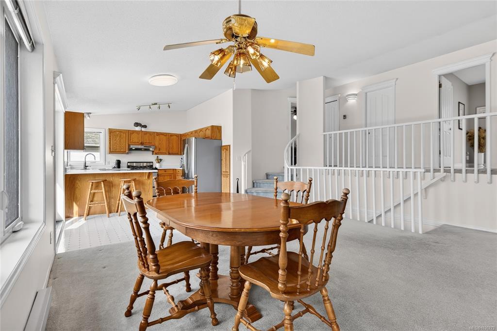 Well-maintained 5 bed, 3.5 bath four-level split home in desirable East Courtenay with stunning Beaufort Mountain views! Offering 2,800 sq ft and a unique, family-friendly layout, this one-owner home (since 1989) features an open-concept kitchen and great room perfect for entertaining, plus two gas fireplaces for added warmth and comfort. Enjoy the large front deck with incredible views and a private, low-maintenance backyard with fire pit and full irrigation. Major updates include all windows and doors (2018/19), new decking and railing (2018), gas hot water on demand (2021), roof approx. 15 years, full Poly B removal and fresh interior paint (2025). Located on sought-after Stafford Ave close to the hospital, recreation centres, schools, and all Courtenay amenities. Don’t miss the opportunity to purchase this home and have views that will sweep you off your feet!