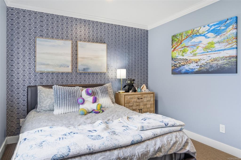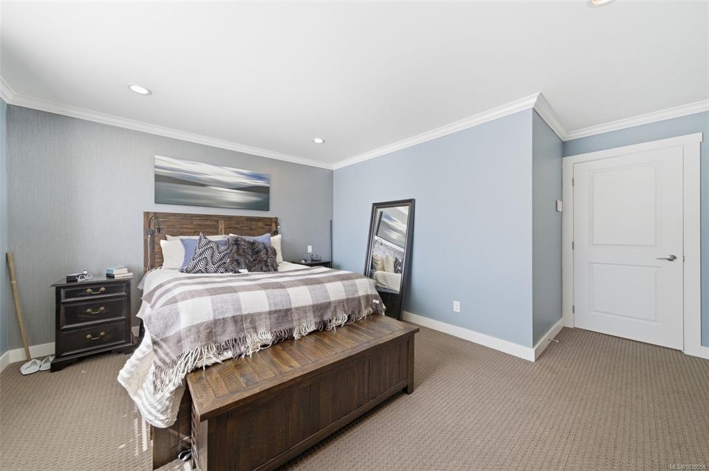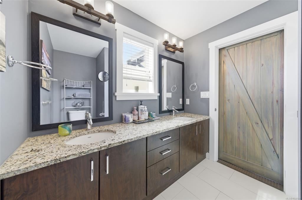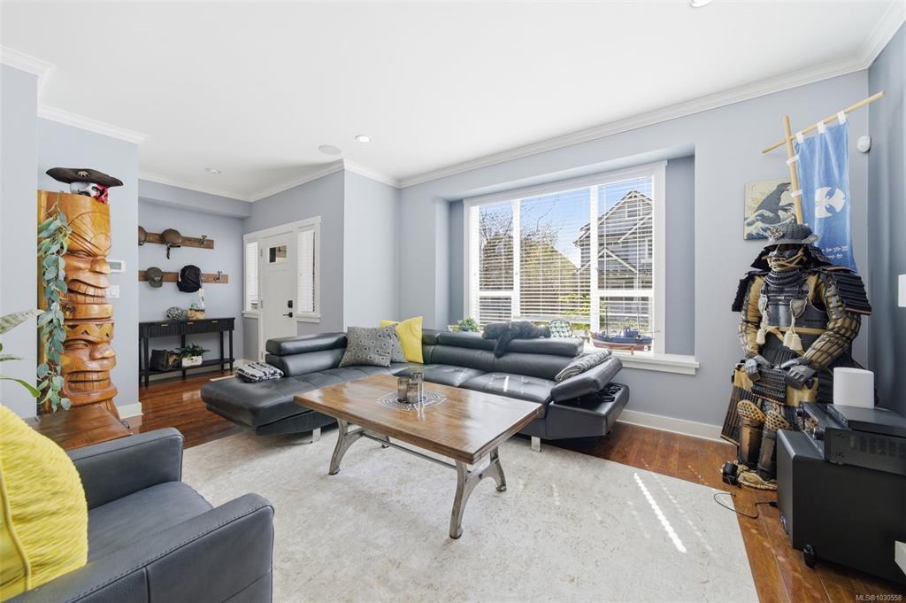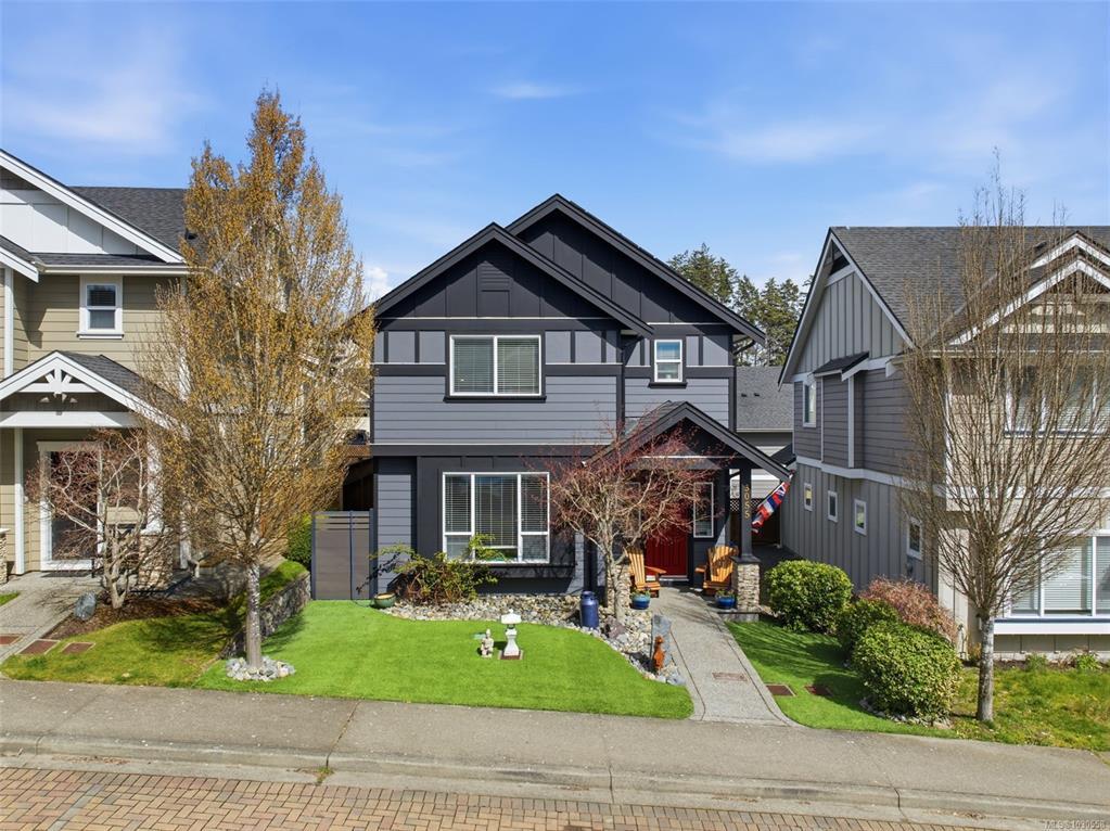 Welcome to 3055 Donier Rd, a pristine 2012 custom-built Westhills home offering 2,661 sq ft of beautifully finished living space and loaded with upgrades. Features include solar panel roofing, heat pump, geothermal heating, wired surround sound, synthetic lawn for easy maintenance, granite countertops, crown moulding, pot lights, and laminate and tile flooring throughout. The main level offers spacious open-concept living with a large kitchen, bright dining area, and generous living room. Upstairs features a large family room over the double garage, laundry room, and 3 spacious bedrooms, including the primary with ensuite. The fully finished lower level is a rare bonus and one of only 2 homes on the street with a finished basement, complete with a 3-piece bath and rec room with potential to add 2 bedrooms. Parking for up to 6 vehicles. Ideally located steps to Langford Lake, Glen Lake, trails, playgrounds, Belmont Secondary, the YMCA, and all amenities.