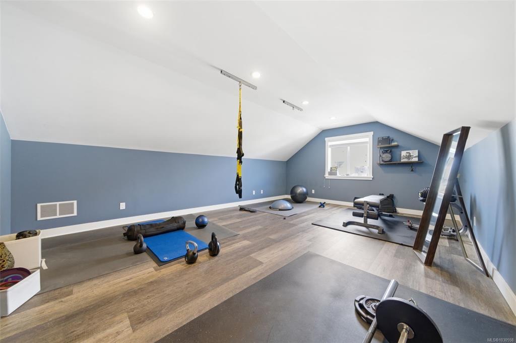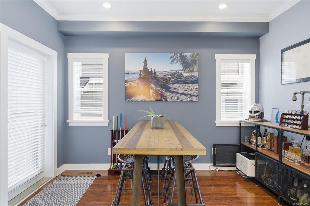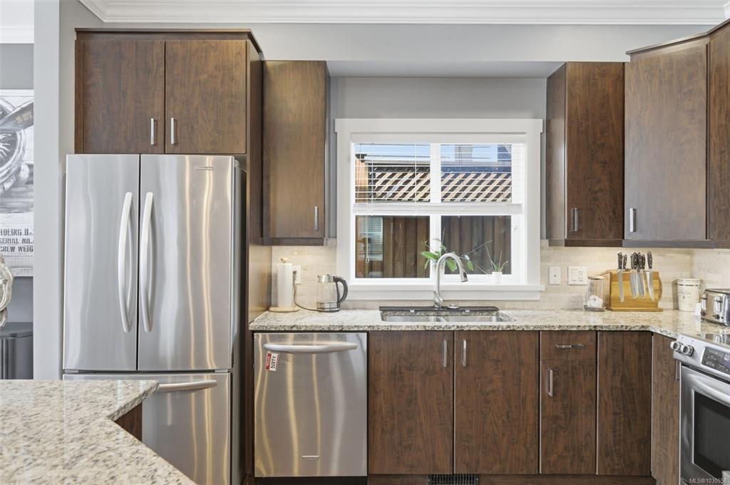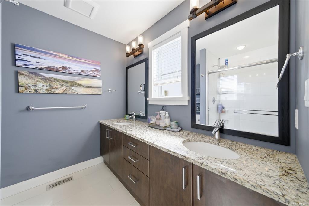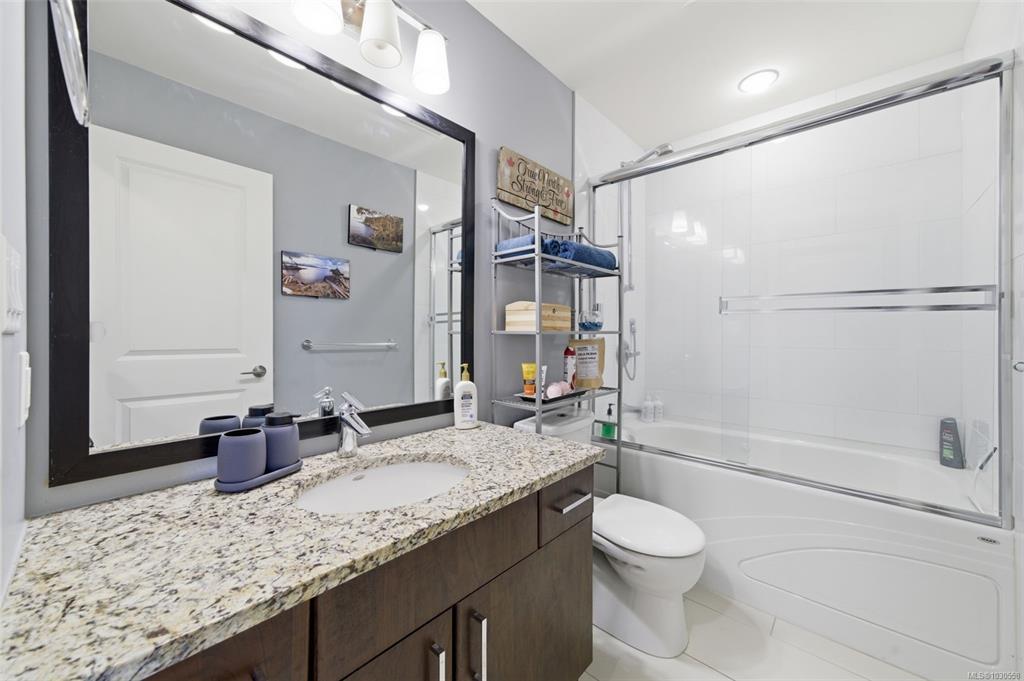 Welcome to 3055 Donier Rd, a pristine 2012 custom-built Westhills home offering 2,661 sq ft of beautifully finished living space and loaded with upgrades. Features include solar panel roofing, heat pump, geothermal heating, wired surround sound, synthetic lawn for easy maintenance, granite countertops, crown moulding, pot lights, and laminate and tile flooring throughout. The main level offers spacious open-concept living with a large kitchen, bright dining area, and generous living room. Upstairs features a large family room over the double garage, laundry room, and 3 spacious bedrooms, including the primary with ensuite. The fully finished lower level is a rare bonus and one of only 2 homes on the street with a finished basement, complete with a 3-piece bath and rec room with potential to add 2 bedrooms. Parking for up to 6 vehicles. Ideally located steps to Langford Lake, Glen Lake, trails, playgrounds, Belmont Secondary, the YMCA, and all amenities.