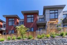 Welcome to Paragon Parc Living! This luxurious 3BD/3BA townhome offers 2,179 sq ft of stylish living in a quiet enclave of mature homes. Contemporary West Coast design showcases soaring rooflines, stone/wood accents & transom windows. Main flr features 9' ceilings, floor-to-ceiling windows, a gourmet kitchen w/ quartz counters, SS appls, wall oven, gas cooktop & XL island. Open-concept layout includes a spacious LR w/ fireplace, dining area, office nook & powder rm. Upstairs: vaulted 13' ceilings, elegant primary w/ walk-through closet & spa-like 4pc ensuite, plus 2 add’l BDs, full bath & laundry rm. Lower lvl: 8' ceilings, media/rec rm, storage & utility closet. Add'l features: hardwood & radiant flrs, remote blinds, EV-ready garage, fenced yard & patio backing greenspace, community garden & park. Built by award-winning White Wolf Homes. New Home Warranty. A rare blend of luxury, comfort & nature just mins to shops, trails & DT Victoria. Price + GST.
