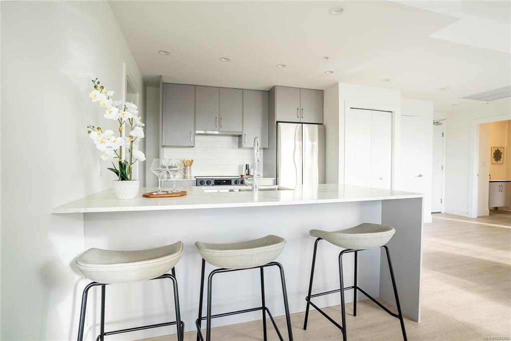 Welcome to The Royale. Starting at $474,900*,a collection of 55 elegant homes that are MOVE IN READY redefining modern living. Property Transfer Exempt and GST for some buyers. Nestled in a prime location, The Royale seamlessly blends contemporary design w/ timeless elegance. Beautiful one, two, and three bedroom homes that are thoughtfully designed w/high-end finishes, spacious layouts, high ceilings, & private patios. Premium details include stainless steel Samsung appliances, High end fixtures, and wide plank flooring. Secured underground parking, AC, Rooftop Patio, and much more. Situated in the vibrant community of View Royal and situated just minutes from parks, beaches, schools, shopping, Vic General Hospital, & the convenience of a boutique commercial space right on the ground floor. Experience the perfect balance of urban accessibility & the natural beauty of Vancouver Island. Strata fees covering both heat & air conditioning. *Price+GST.