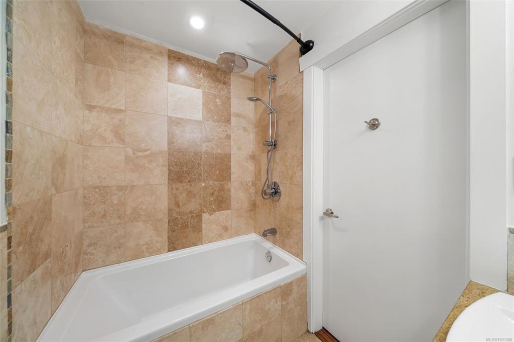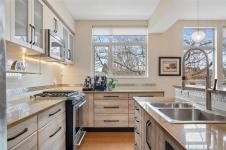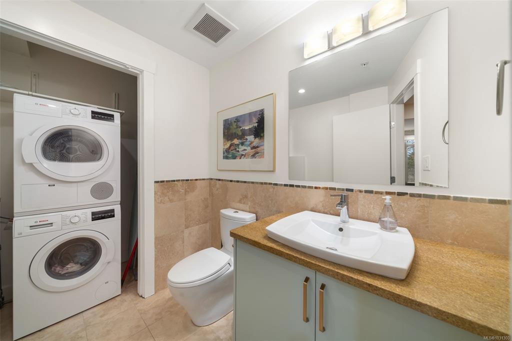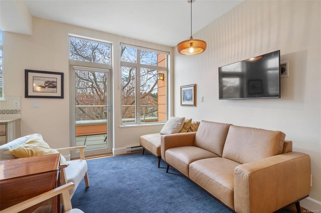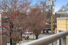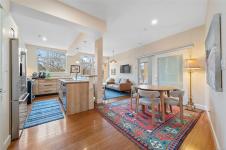 Stunning penthouse with its own PRIVATE ROOFTOP PATIO in the heart of Cook St Village. TWO primary bedrooms plus, each with a luxury ensuite, plus a powder/den room. Bright open-concept living features bamboo floors, LED lighting with dimmers, and a large patio overlooking a tree-lined street. Updated kitchen with new 5-flame gas range (griddle + air fry), modern cabinetry, granite counters with breakfast bar, stainless appliances, and pantry with custom pull-outs. Enjoy 2 outdoor spaces including a 700 sq ft private rooftop patio with irrigation, electrical, and gas BBQ hookup. Den with built-in desk, Murphy bed, and glass barn door. Upgrades: Bosch W/D, dual-zone wine fridge, keyless entry, Hue lighting, new blinds, fresh paint, and updated baths. Secure parking, bike storage, pet-friendly, and rentable. Steps to cafés, shops, ocean, Dallas Rd, and Beacon Hill Park.