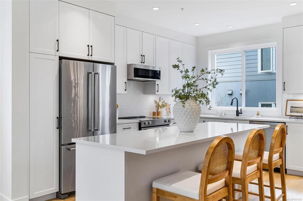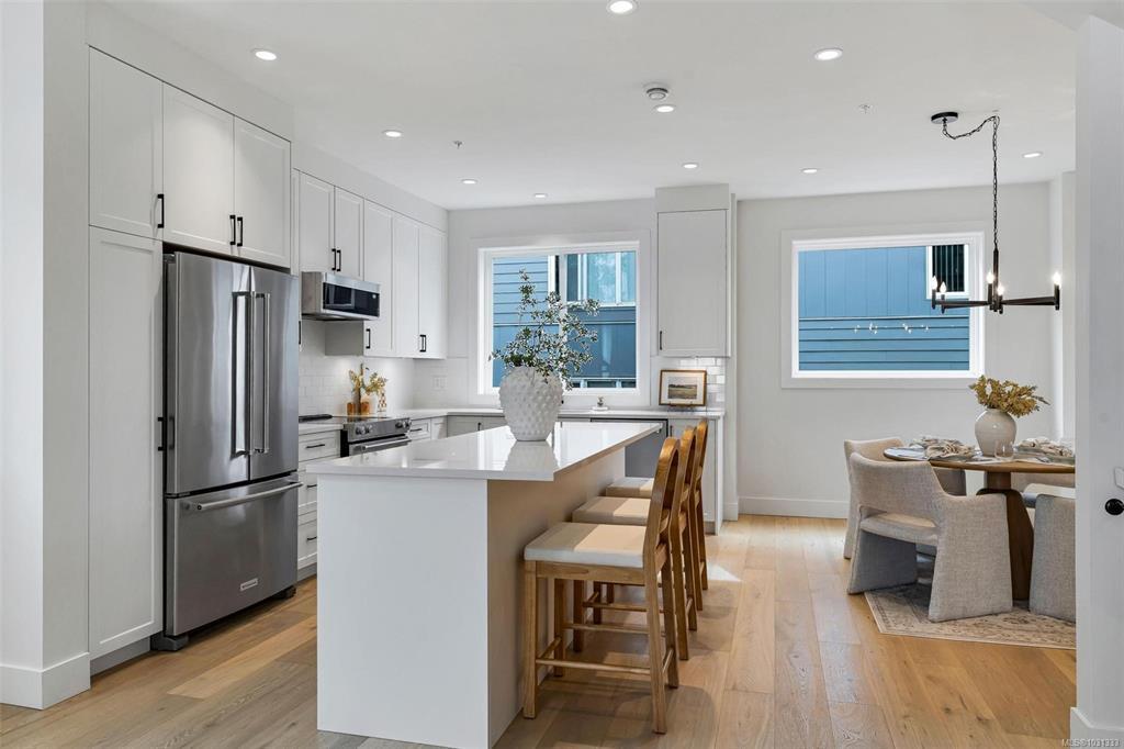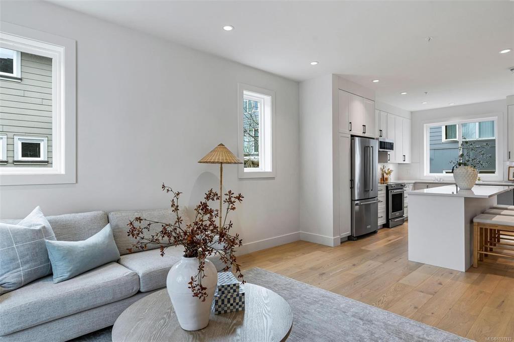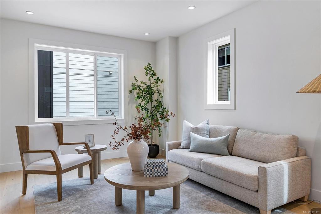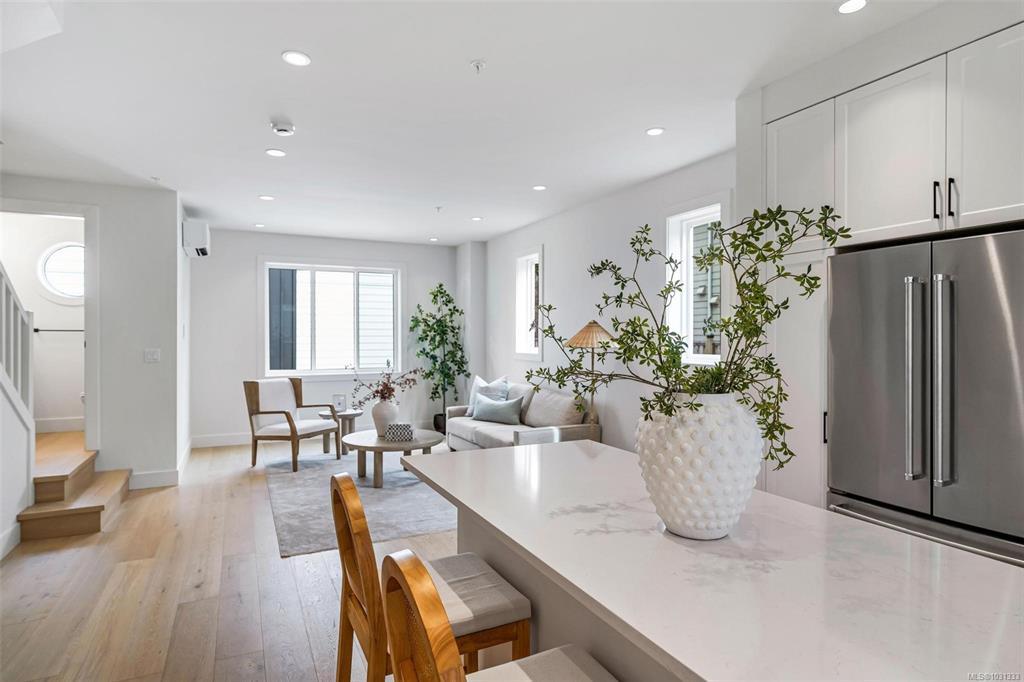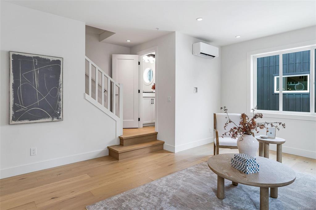 **Open House Saturday 1-3pm** Proud to present The Bayside Towns on Fifth - a curated collection of 16 townhomes in Sidney's most desirable neighbourhoods, ROBERT'S BAY. Offering a modern farmhouse aesthetic & varied layouts appealing to young families through to active retirees. This larger end location plan offers 3 spacious bedrooms on the upper level including the primary with ensuite. 4th bedroom or office located on the lower level with its own 3 pce bath. Light wide-plank hardwood throughout entry and main level plus large picture windows that will keep the home light & bright. Custom white kitchen cabinets with quartz counters, generous island & stainless appliances. Efficient heat pump for year round heating and cooling. In-floor heat in all tiled bathrooms. Interlocking brick, fully fenced southeast facing patio with irrigation. Over 50% now sold - close to beaches, trails & easy walk to Beacon Ave, this is a 12/10 location! More homes available, starting from $899,000 + GST