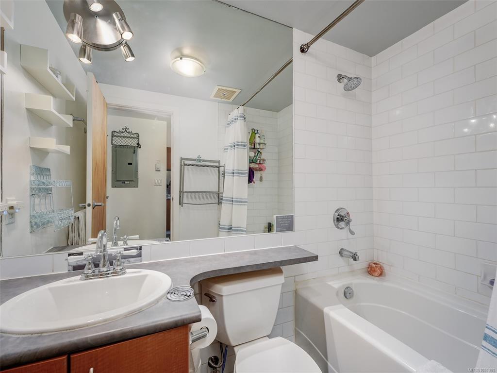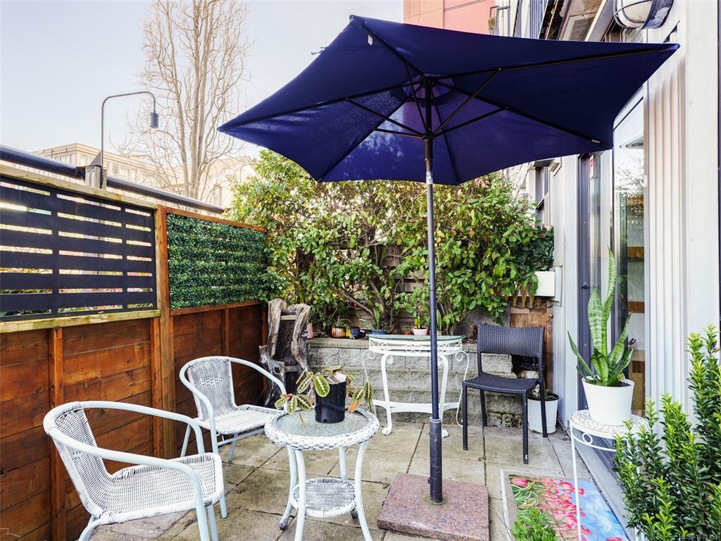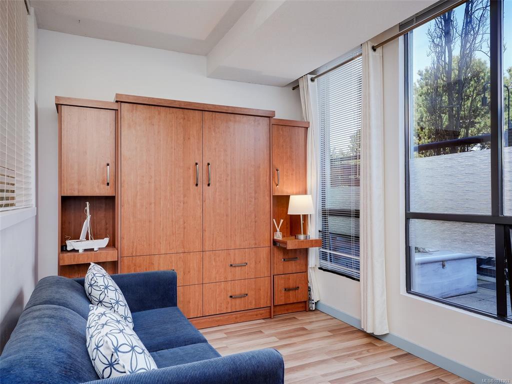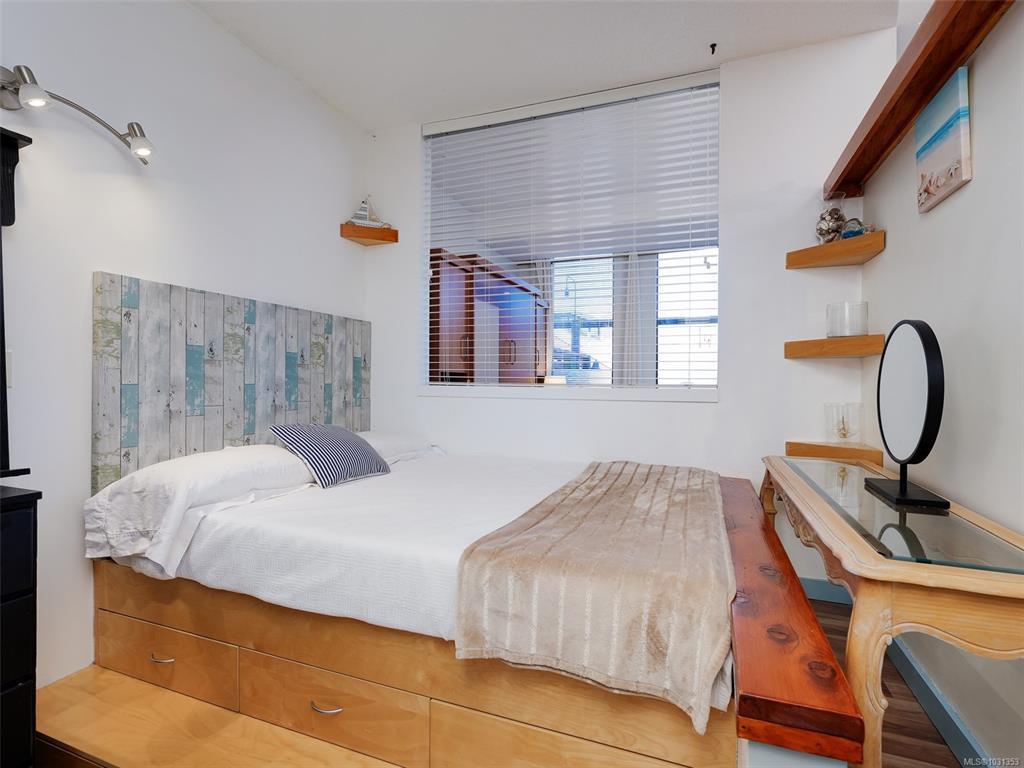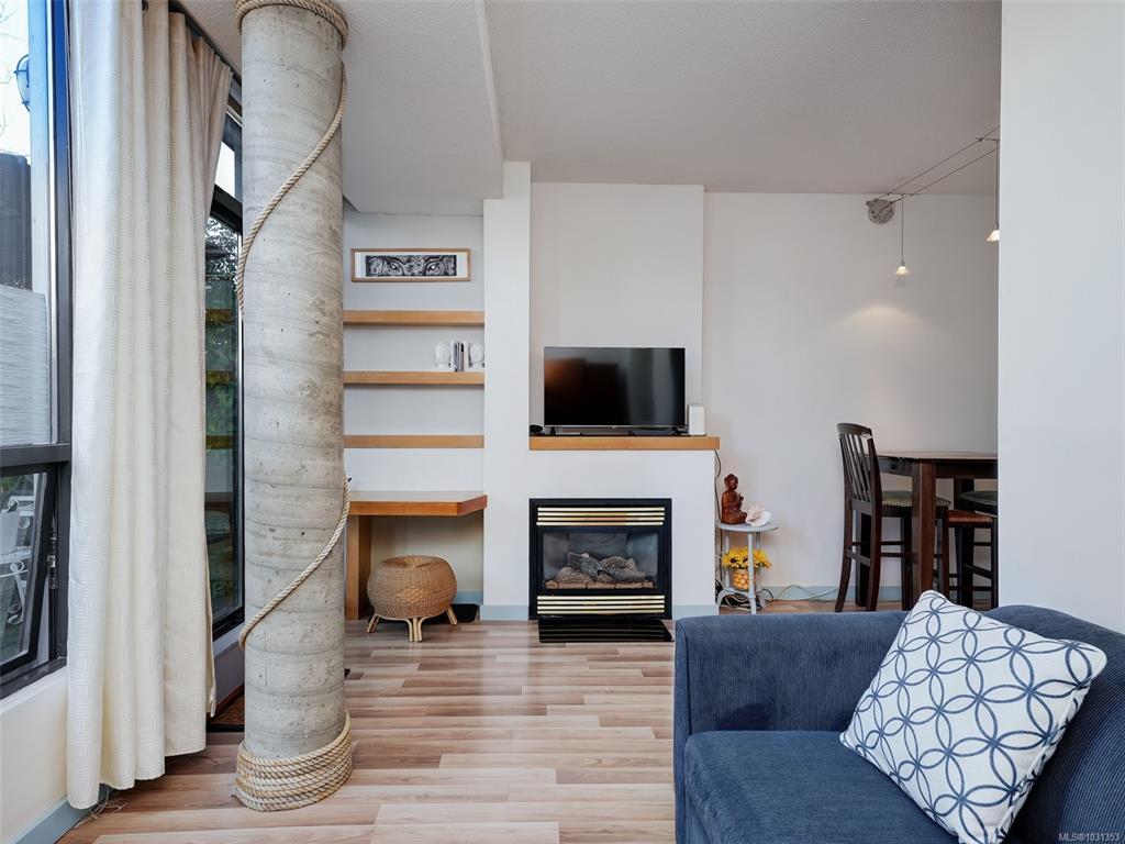 Welcome to Mermaid Wharf, a sought-after steel & concrete waterfront building in the heart of Old Town! This bright & airy 1-bedroom, 1-bathroom condo boasts floor-to-ceiling windows, an open-concept layout & a sunny private north-facing patio with Ocean views. Enjoy the warmth of the gas fireplace in the combined living & dining space, complemented by beautiful brand-new murphy bed. The kitchen includes all appliances, & in-suite laundry adds convenience. Secure underground parking with storage & a separate storage locker provide peace of mind. Take in stunning views from the shared rooftop patio with a BBQ, perfect for summer evenings & fireworks. With bike & kayak storage (with its own kayak dock in front of the building), plus no rental or pet restrictions, this is an ideal live-work space. Steps to Craft restaurant for some amazing food & a bevy & minutes to the Inner Harbour, shops, galleries, & world-class dining, this vibrant location lets you embrace the best of Victoria.