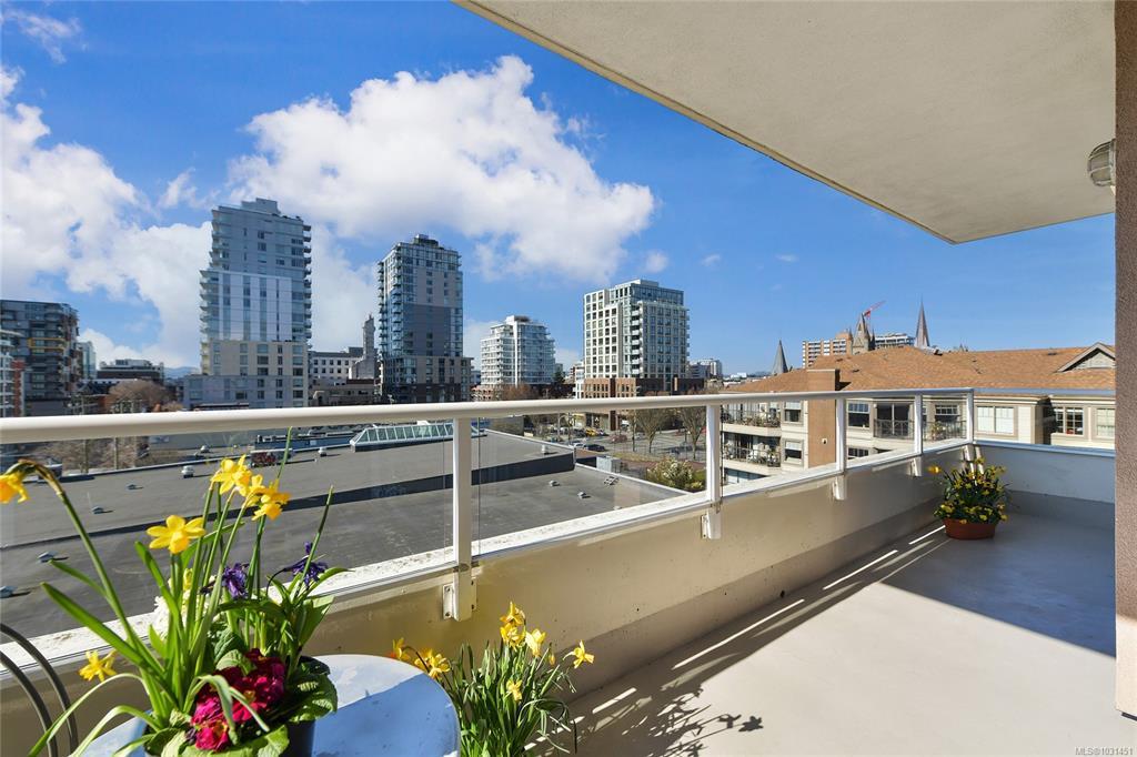 OPEN HOUSE Sat/Sun Apr11/12. One of this country’s most vibrant & diverse restaurant scenes is at your doorstep in this immaculate & spacious downtown condo. Just steps from a rich & lively culinary & entertainment district, this sunny, bright condo provides both easy access & a peaceful oasis from the pulse of the city. Soak in the city view & breathtaking sunsets from a huge 119sf west-facing balcony. The suite is move-in ready with refurbished kitchen cabinet doors/drawers, updated Fridge, Stove, Kitchen sink & Washer. BONUS: Hot water is incl. in the strata fee! There’s no worries with this impeccably maintained concrete & steel building with a very-strong contingency fund (over $1.5M). The building welcomes 1 pet any size, has a gym, bike lockup, live-in caretaker, guest suite & secure underground parking with a waitlist. Right across from The Market on Yates grocery store, London Drugs & everything you need! Beacon Hill Park & the Inner Harbour are just a 10 min walk away!