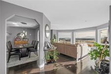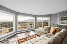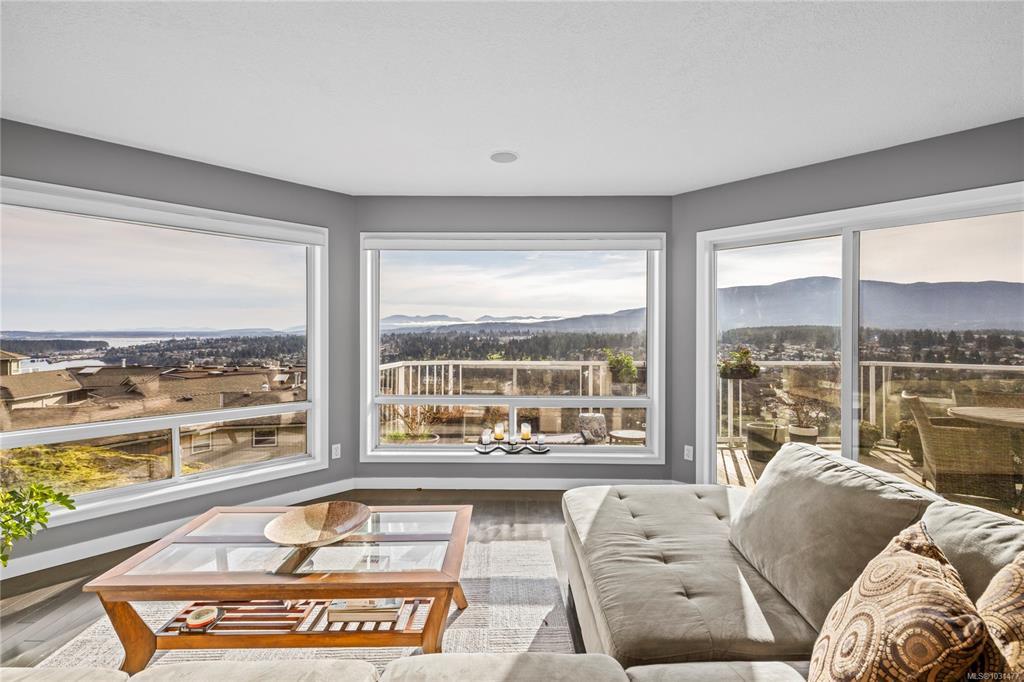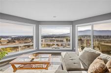 Soak in breathtaking ocean, mountain and golf course views from this beautifully updated home, where abundant windows and a sunny southern exposure make the scenery the star. The expansive deck is the perfect place to relax and take in endless vistas, while inside you’ll find a spacious main living area with hardwood flooring and a stylish gas fireplace. The updated kitchen features stainless steel appliances and flows seamlessly for everyday living and entertaining. The primary bedroom is a true retreat, offering two separate ensuites, each with its own walk-in closet, plus access to a covered deck overlooking Linley Valley. A second bedroom on the main level, an additional lower-level bedroom, abundant storage, and a double garage add to the appeal. Thoughtful updates throughout enhance comfort and style. The complex is designed for 55+ and allows one dog or cat up to 22lbs. All data & measurements are approx and must be verified if fundamental.