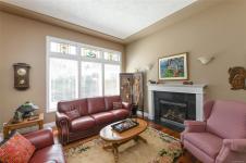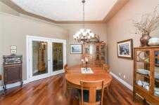 Tucked away at the end of a quiet cul-de-sac, this immaculate 2,581 sq ft home offers the perfect blend of comfort and privacy, backing onto peaceful ALR farmland with nature right at your doorstep. Featuring 3 generous bedrooms and 3 bathrooms, this home is ideal for families or empty nesters alike. The main level boasts rich hardwood floors, a spacious primary bedroom and a second bedroom or home office. The elegant dining and living room are beautifully separated by French doors and anchored by a cozy gas fireplace.