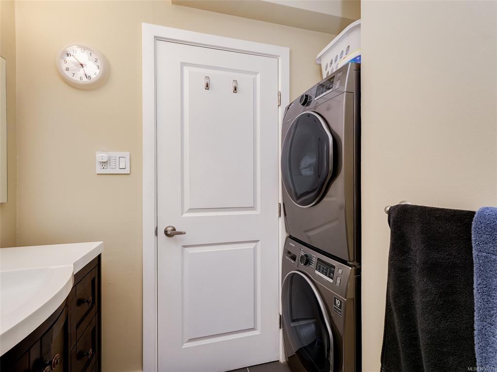 Welcome to Cloverdale Court - two level top floor unit with recent updates and in-suite laundry - one of the few in this complex that is grandfathered in! Main floor has been opened up with renovated kitchen including espresso cabinets, stainless appliances, quality laminate and bright, open living space. Upstairs two bedrooms with newer carpeting and full bathroom with a second external door in second bedroom leading to quiet top floor walkway. Lots of storage under the stairs, crown moldings and pot lights. Well managed proactive strata with recent major upgrades being completed including siding, windows, decks and walkways. Strata fees include heat and hot water. See enclosed 2025 AGM Minutes for upcoming projects! Very convenient location, close to major bus routes, parks, schools and all amenities.
