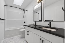 This home is a 2-bedroom, 1.5-bathroom residence with a bright, efficient layout, modern interiors, and a private patio perfect for relaxing outdoors. Quartz countertops and a neutral palette create a timeless finish. Designed for comfort and efficiency, it features TPO roofing, LP SmartSide siding, acrylic stucco, enhanced insulation, split heat pumps, and EV charger rough-ins. Includes dedicated parking, bike racks, and is move-in ready in a quiet, established neighbourhood.