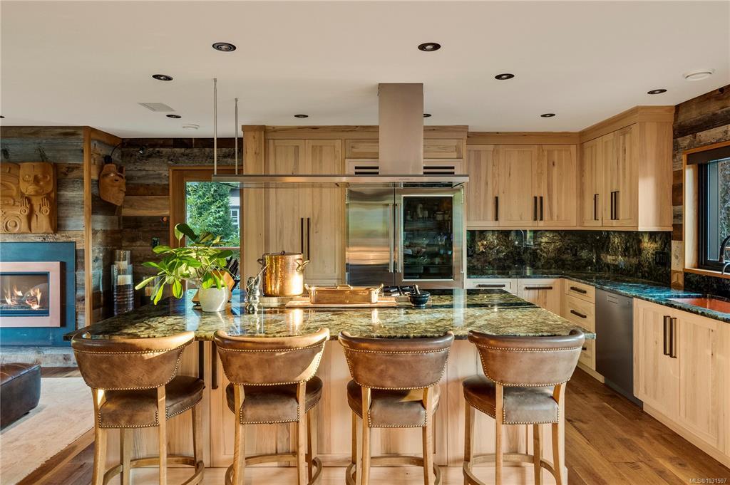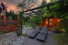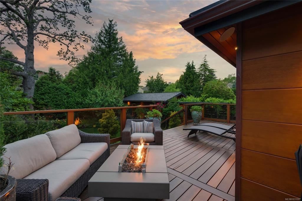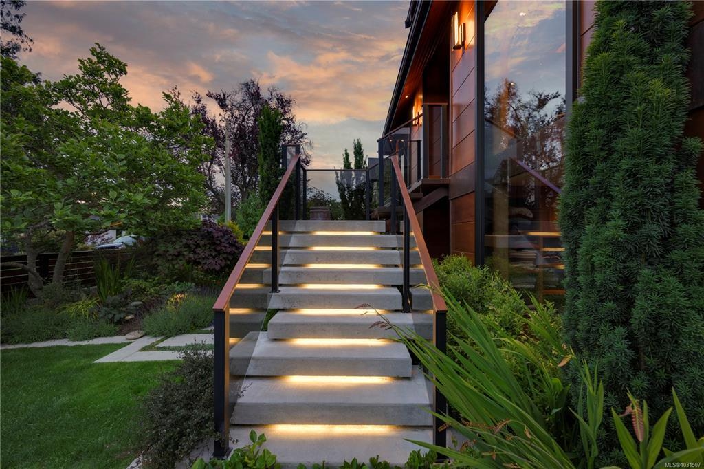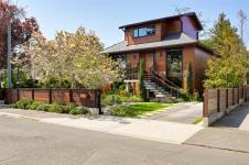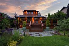 Sustainable Masterpiece! Located just steps from the beach this modern gem is ideal for the environmentally conscious couple seeking state of the art amenities. Choosing natural, organic materials such as, clear cut cedar, copper, solid walnut floors/doors, slate roof, lemurian supreme labradorite backsplash/countertops, master craftsmen created a home of exceptional quality and sophistication that truly excites the senses. Featuring an unusual totem pole and sand blasted glass panels crafted by award winning carver Klatle-bhi, the home is truly a work of art. A separate guest house provides a comfortable hermitage for a family member in the private, fully fenced garden w/automated gates. Bathed in natural light by day and dramatically "uplighted" by night, purchasers are encouraged to view in both lights. Situated on the "beach block", located close to the Victoria Golf Club, surround yourself in the unparalleled beauty and unequalled lifestyle in one of Canada's finest neighbourhoods