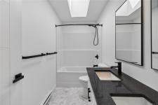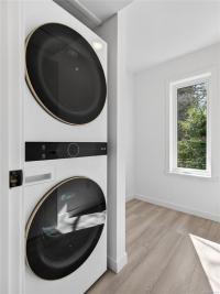 This home is a 2-bedroom, 1.5-bathroom residence with a bright, efficient layout, modern interiors, and a private patio perfect for relaxing outdoors. Quartz countertops and a neutral palette create a timeless finish. Designed for comfort and efficiency, it features TPO roofing, LP SmartSide siding, acrylic stucco, enhanced insulation, split heat pumps, and EV charger rough-ins. Includes dedicated parking, bike racks, and is move-in ready in a quiet, established neighbourhood.