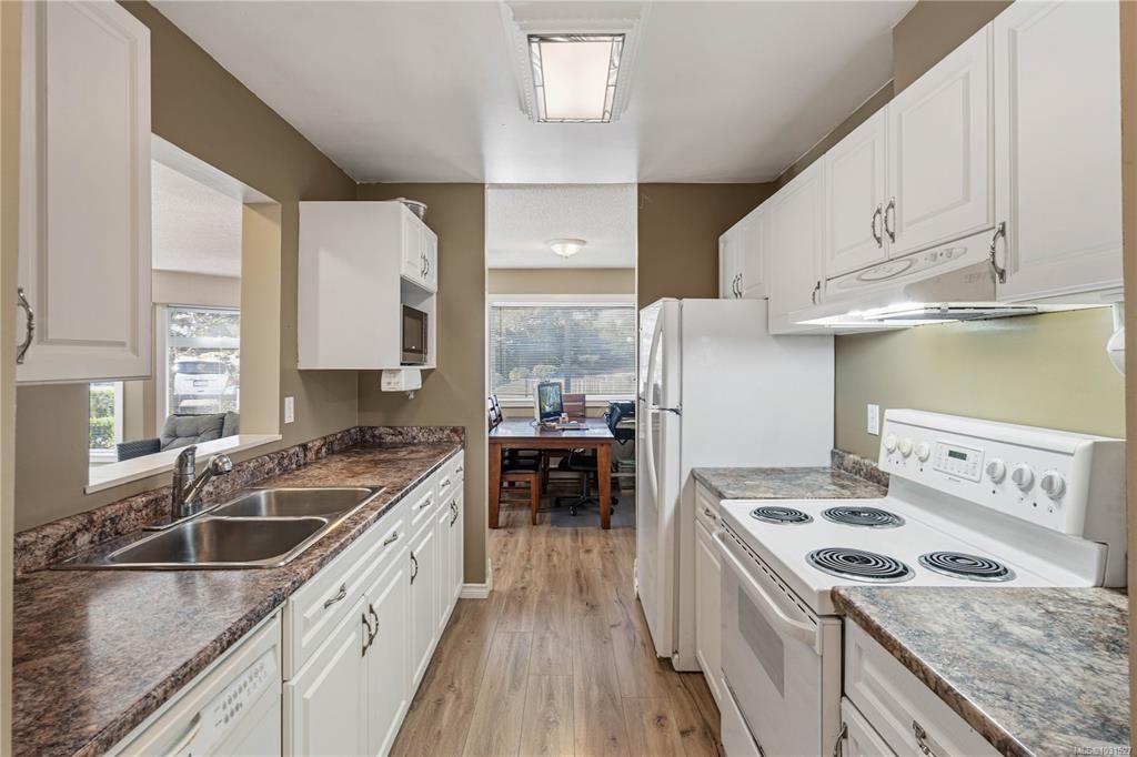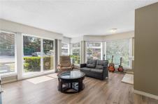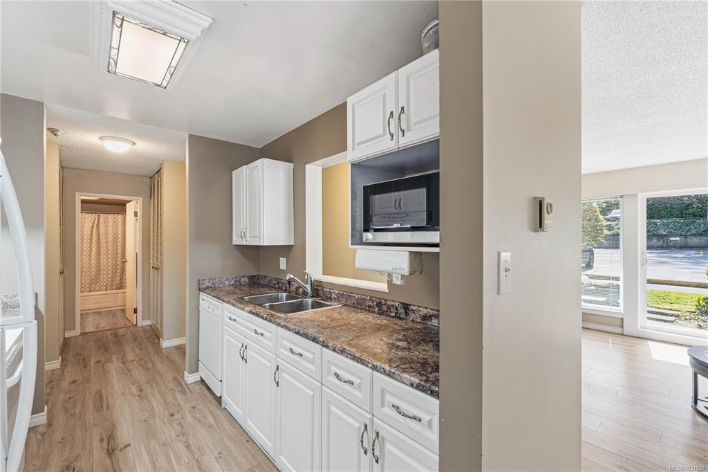 Welcome to Seascape Manor in Departure Bay, one of Nanaimo's most sought-after addresses! This bright and inviting 978 sq ft ground-floor corner unit offers 2 bedrooms, a well-appointed kitchen, and a full 4-piece bathroom. South and west-facing windows fill the condo with natural light. The primary bedroom features a walk-through closet with built-in organizers that leads directly to the bathroom. A decorative fireplace adds character to the living space. Step directly from the living room onto a patio surrounded by manicured gardens. Building amenities include an outdoor heated pool and indoor hot tub. The entire building has recently undergone a major exterior restoration, providing peace of mind for years to come. Easy single-level access with parking right outside your door. Centrally located and close to transit, beaches, golf and shopping. The coastal lifestyle you've been waiting for is within reach. Don't miss this affordable home in this popular and well-established complex!
