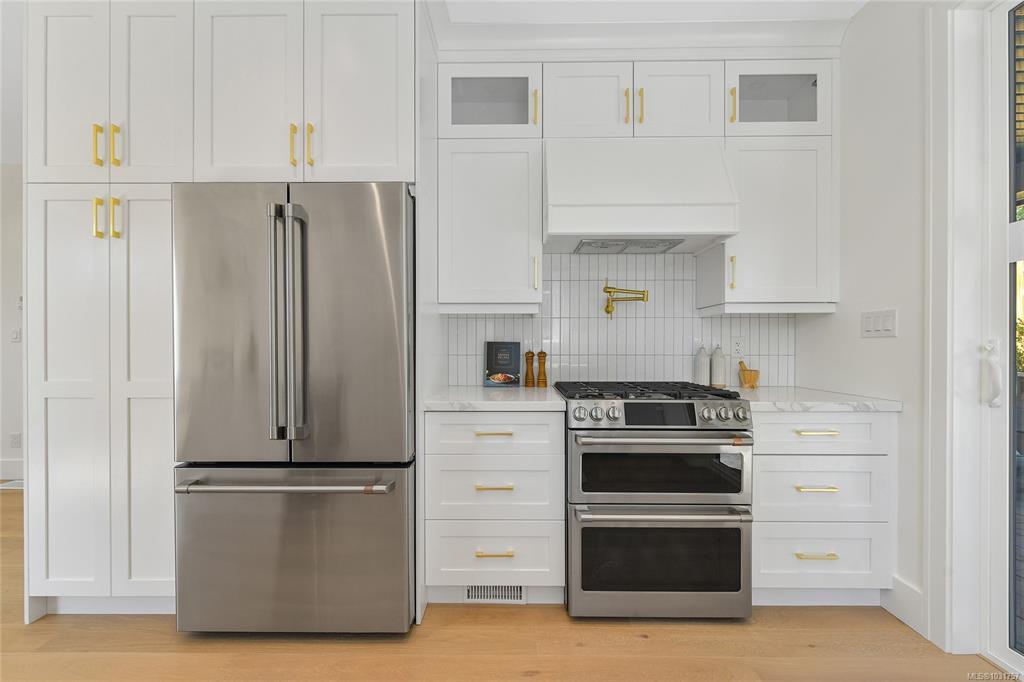 Well located just a short walk to Broadmead and Royal Oak Shopping Centres, Saanich Commonwealth Place, and Elk & Beaver Lake, this custom-designed, quality-built townhome is a rare offering. The main level features bright, open living with 9’ ceilings, picture windows, custom cabinetry, built-in office nook, and two outdoor decks. The chef-inspired kitchen showcases quartz countertops, a large island, pot filler, wine fridge, tiled backsplash, and under-cabinet lighting. Upstairs, the spacious primary suite offers a walk-in closet with LED lighting and ensuite with heated tile floors, along with two additional bedrooms and a stylish main bath. The lower level includes a fourth bedroom, full bath, and patio access—ideal for guests or extended family. Energy-efficient features include a heat pump, electric furnace, gas hot water, gas BBQ hookup, and EV charger rough-in.