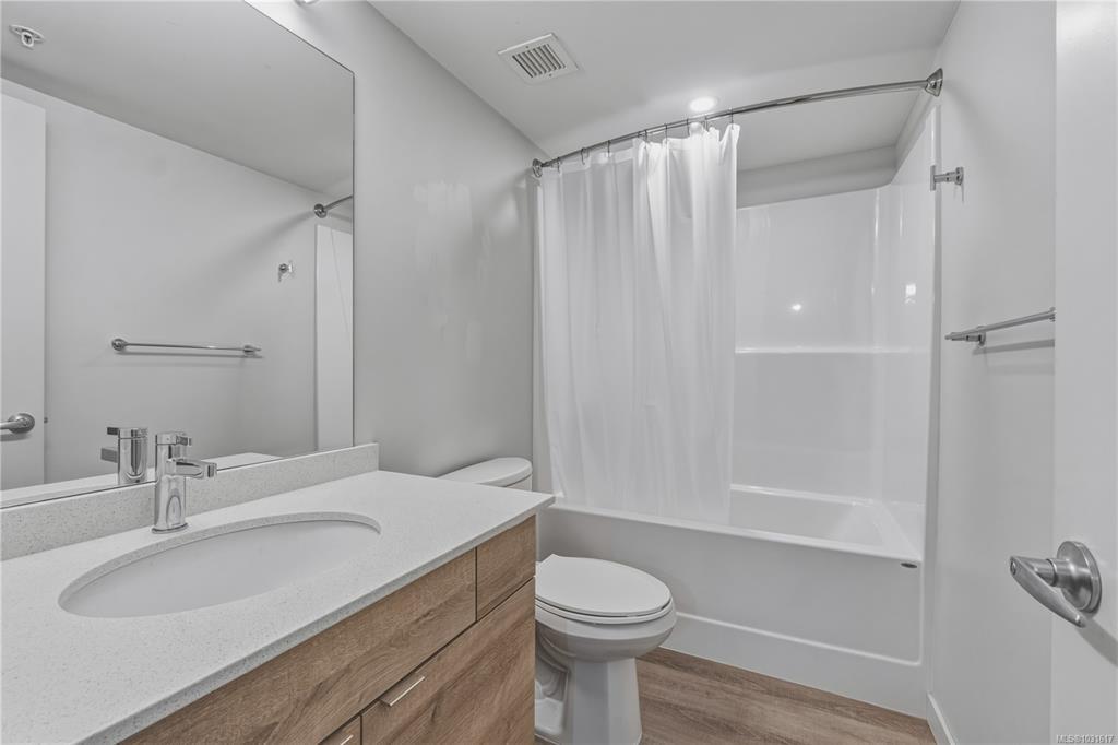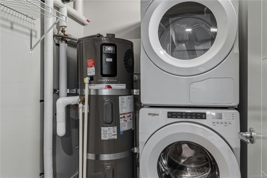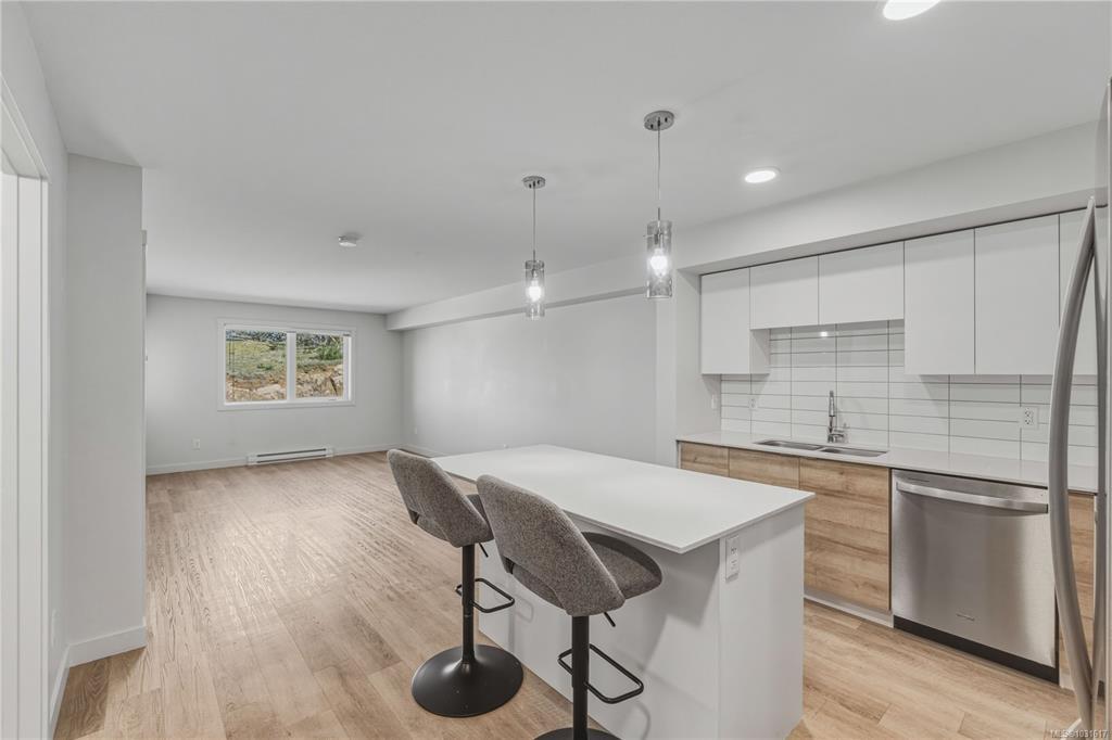 Welcome to this modern top-floor 1-bedroom condo in a quiet, well-situated building just 4 years young. Tucked at the back of the complex, this home offers peace and privacy while still being close to everything. Inside, you’ll find a bright, open layout featuring a spacious living room and a stylish kitchen complete with stainless steel appliances, quartz countertops, and a functional island. Step out onto your covered deck to enjoy year-round outdoor space. The bedroom is generously sized and located beside the 4-piece bathroom. Enjoy the convenience of your own hot water tank, plus an in-suite laundry room. This home includes 1 underground parking stall and bike storage. Pet-friendly with allowance for 2 dogs, 2 cats, or one of each. Residents also enjoy a clubhouse featuring a gym, yoga space, and lounge. Located within walking distance to Nanaimo North Town Centre and Long Lake, this is easy, modern living at its best.