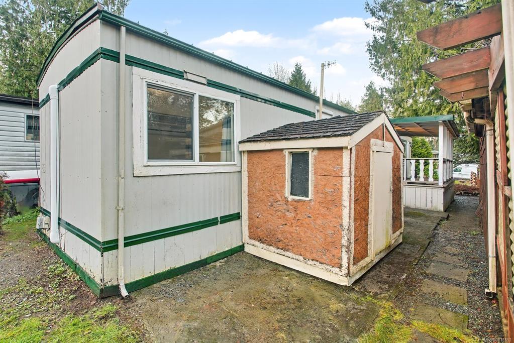 SPRING IS UPON US. Priced to sell. Some rentals allowed with Management approval. Enjoy the 2 Duct less heat pumps with two wall units, This 2 Bed, 1 Bath (walk in shower) has a 7.5' X 14' fenced covered entrance porch, new ceilings, double pane windows, resealed metal roof & garden storage with large garden area. New paint in and out. engineered wood floor in kitchen, pantry, plenty of storage. Parking for 2 cars. A large ravine in back. Walk directly from the unit to live stream and Enjoy the wild life including deer, wild turkey's & yearly Salmon run, Enjoy the many trails nearby. Low pad fee includes water, sewer, road cleaning and Road/tree maintenance. Very friendly Park owner and Manager. Close to Mill Bay Market, Hwy 1, rec center, schools, churches and a bus stop at park entrance. Just 5 min to Shawnigan Lake for summer fun & 5 min to Mill Bay Marina. 15 min to Duncan and Langford. pets allowed n approval. VACANT for easy viewing and Quick Possession. D'NT MISS OUT. MUST SEE.