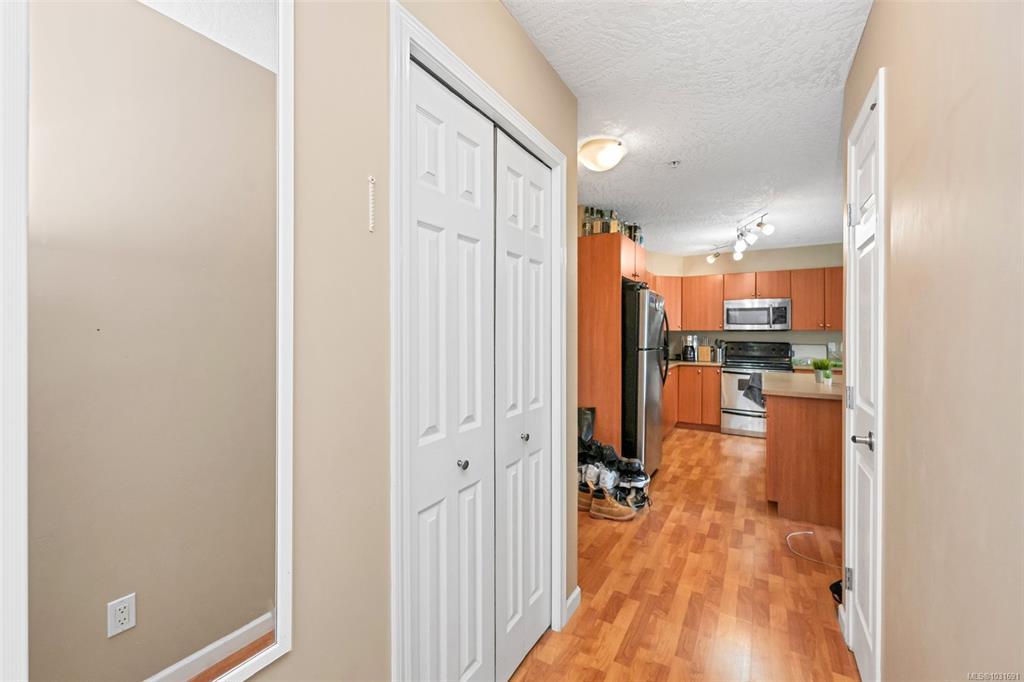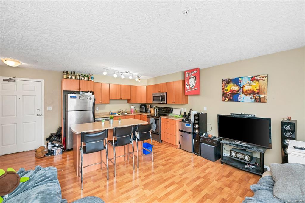 Welcome to this bright and inviting 2 bedroom, 1 bath condo in the heart of Colwood. Ideally located for an active lifestyle, you’re just minutes from shopping, hiking trails, beaches, and easy routes into Victoria or up island. The northwest exposure keeps the home cool in summer while still offering plenty of natural light. The appealing layout features an open-concept modern kitchen with stainless steel appliances and an island with bar seating, flowing into the living room with direct access to the balcony—perfect for summer BBQs. Enjoy in-suite laundry, generous in-unit storage, and a well-run strata with no age restrictions, rentals allowed, and one dog (up to 15 kg) or one cat permitted. This home includes secure covered parking and a separate storage locker.