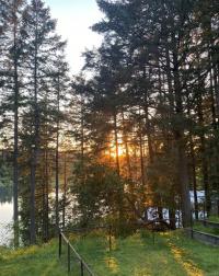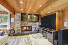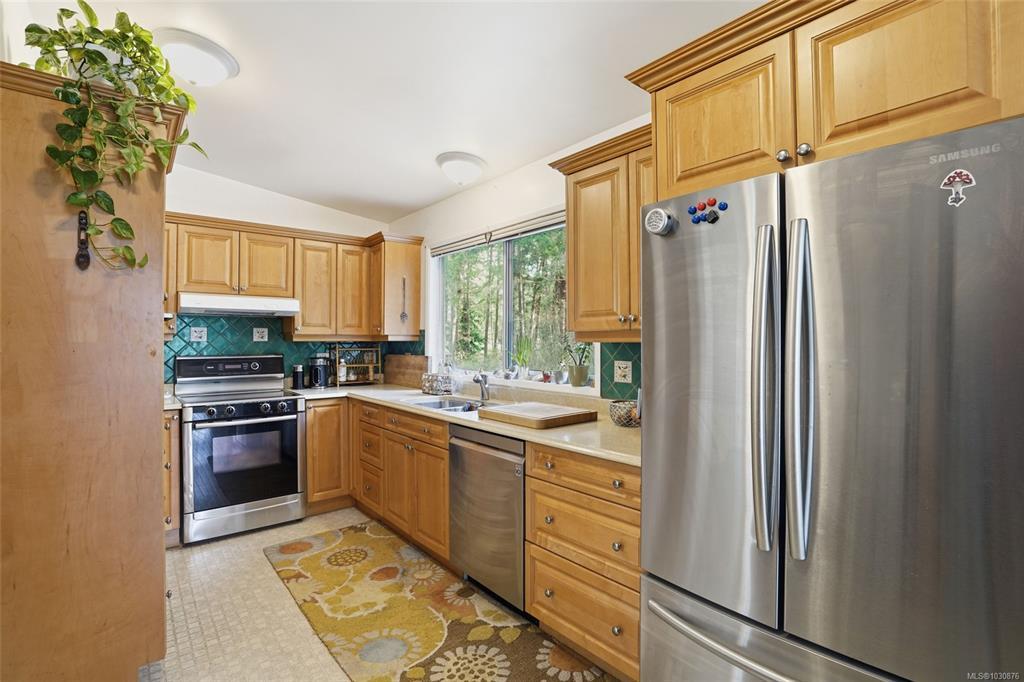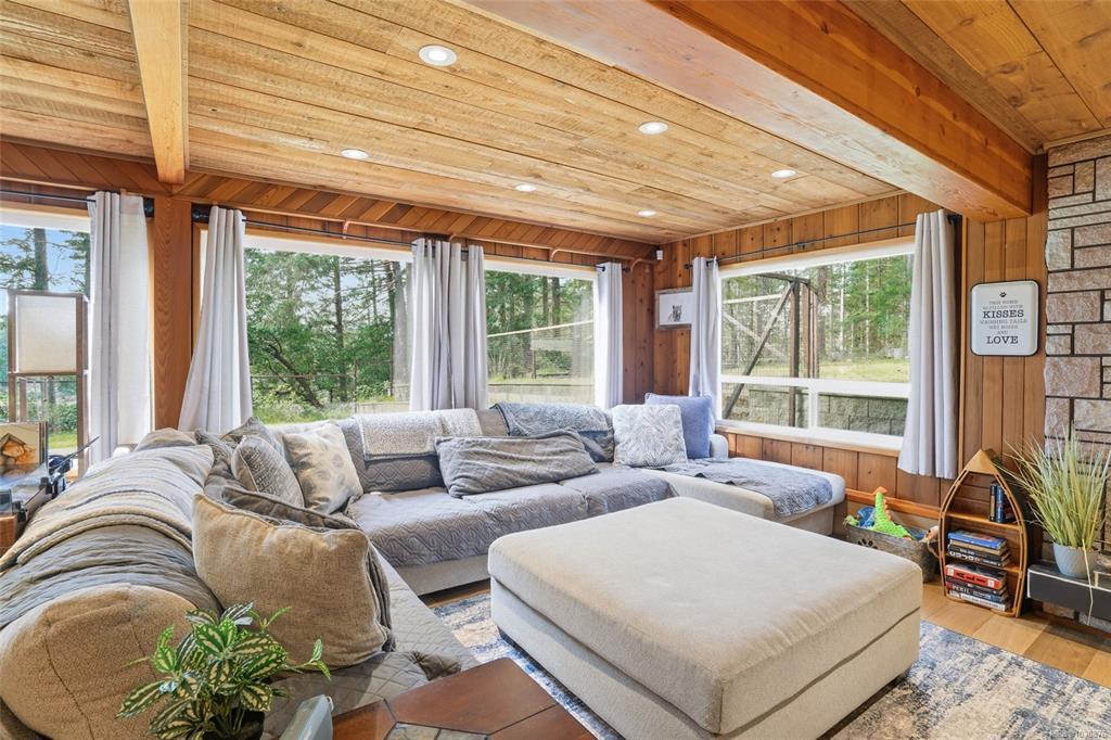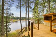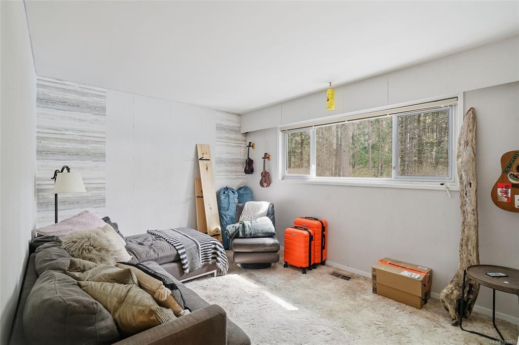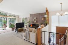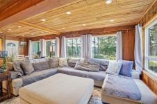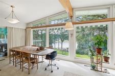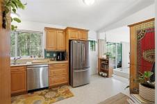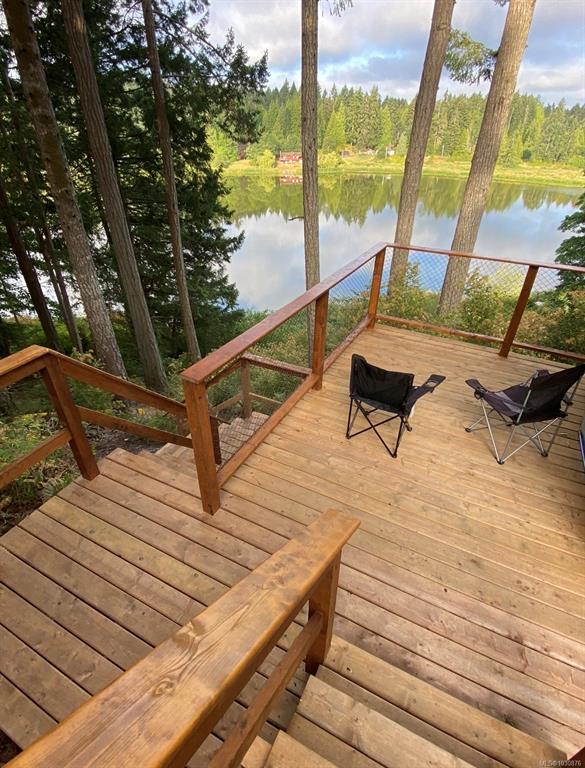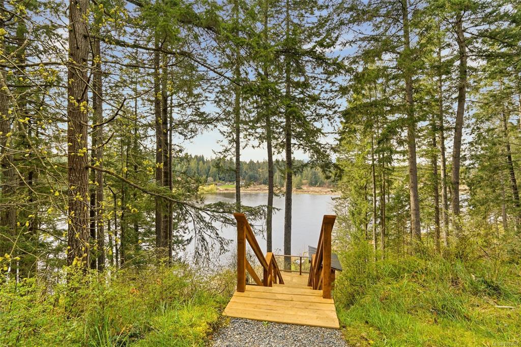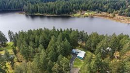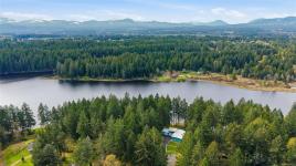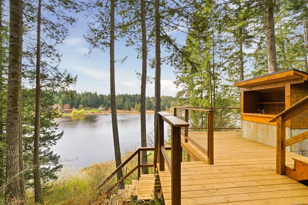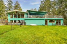 A rare chance to own your own peaceful retreat—properties like this seldom become available. Set on serene 0.64-acres, it offers solitude on a quiet rural cul-de-sac. The home enjoys tranquil views of, and swimmable and fishable access, to Holden Lake—itself bordered by gorgeous Hermer Park. A bonus custom-crafted “sunset deck”, is ideal for peaceful mornings and golden sunset evenings. Inside, mid-century modern elements are highlighted by expansive windows framing the natural landscape. A spacious partially covered deck off the kitchen extends year-round enjoyment. The flexible layout features two bedrooms up, with a separate 2-bedroom in-law suite below. A detached studio off the double garage offers space for guests or creative pursuits. Notable updates include new roof, 18 kw backup generator, UV water filtration, upgraded electrical with EV charger, and heat pump. A unique offering combining privacy, lifestyle, and investment potential. All data approx & should be verified