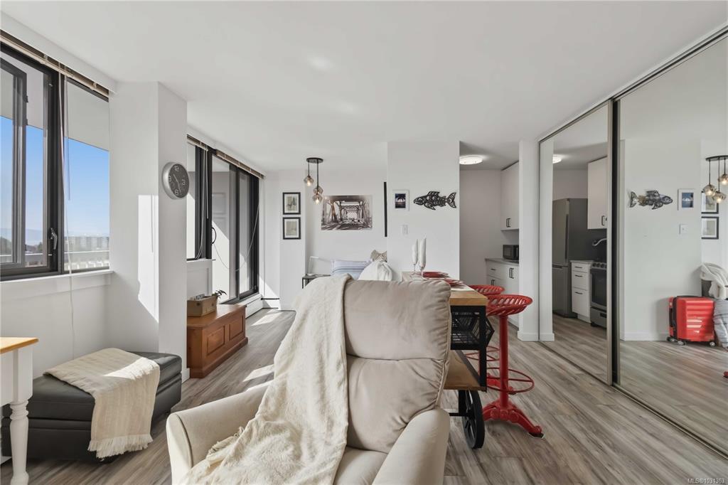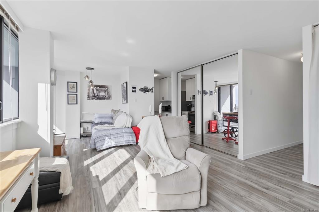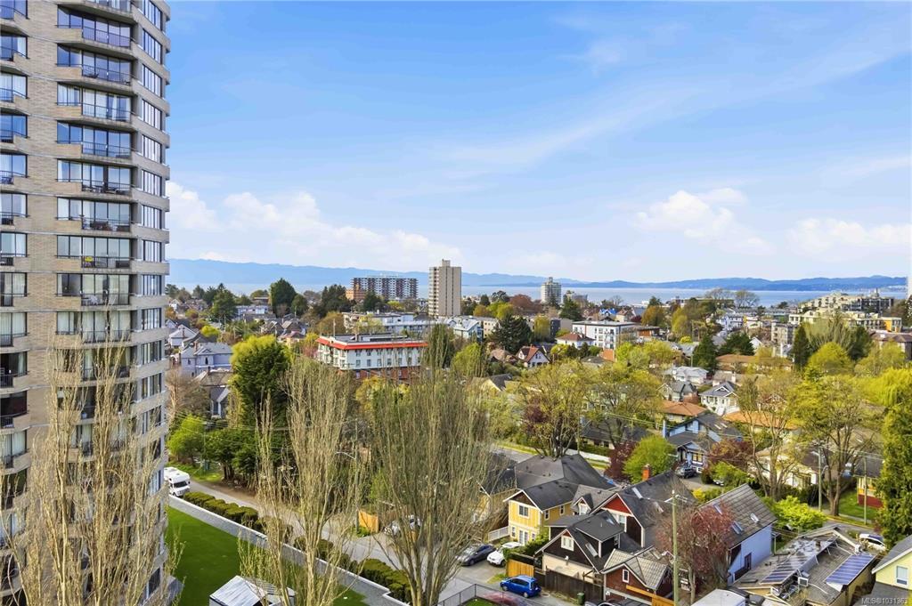 With absolutely amazing proximity to the camas field and the turtle pond at Beaconhill park, this 10th floor newly renovated ocean view condo offers a chance to enter the Victoria real estate market as an investor, a first time home owner or a recreational owner of a perfect pied-a-tere in between downtown Victoria and the cruise ship dock at Ogden point. You will love the easy flow layout, ample closet space and the perfect size kitchen for entertaining. Enjoy the outdoor pool, indoor hot tub or pop down to the many beaches just a stroll away. Monthly fees include property taxes, heat and hot water. For investors, there is unrestricted rentals (6 months minimum). The building has secure underground parking and extra storage locker, with shared laundry and workshop. This is affordable living at its finest in Victoria.