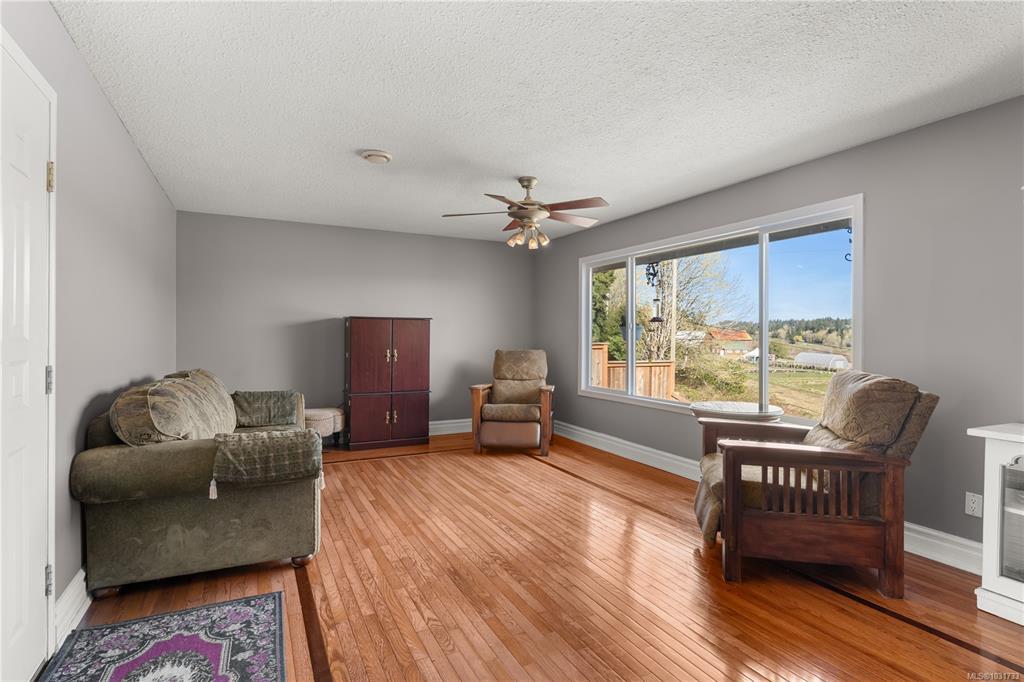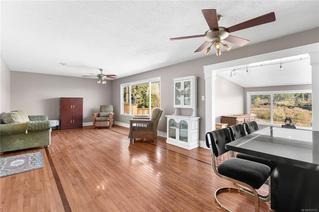 Welcome to South Jingle Pot, one of Nanaimo's most sought-after neighbourhoods, minutes from the incredible Westwood Lake, a year-round destination with a 5.5 kilometre trail, sandy beaches, kayaking, and fishing. Main level entry home offering 2,200~ square feet across two levels, three bedrooms, three bathrooms, and two kitchens. The living and dining rooms face out to a valley view you won't get tired of, and the living room itself is a generous size. A whole-home heat pump means heating and cooling are fully covered. Downstairs, a self-contained one-bedroom in-law suite with its own kitchen and bathroom adds real flexibility. Outside, you've got a single-car garage, a separate workshop, a large garden area, and a chicken coop. Groceries, schools, and highway access are all close by. This is a lot of home in a truly special pocket of Nanaimo. Measurements are approximate. Verify all data and measurements if important.