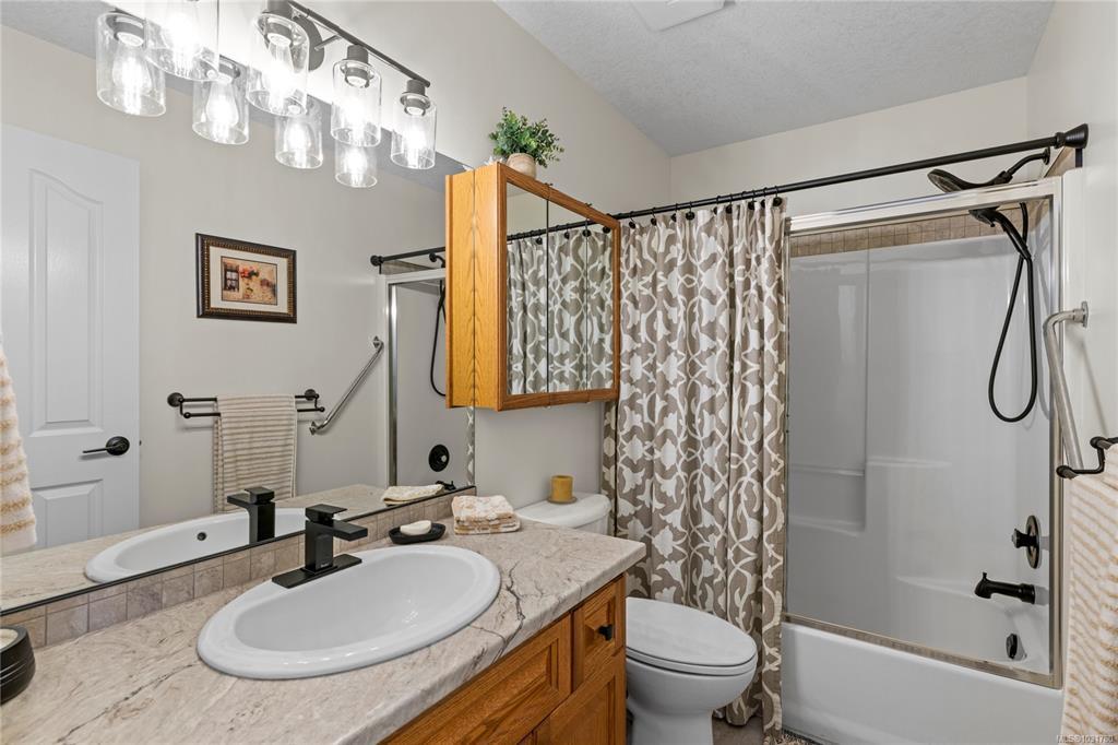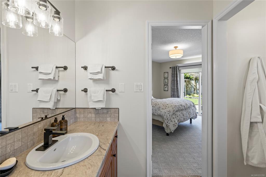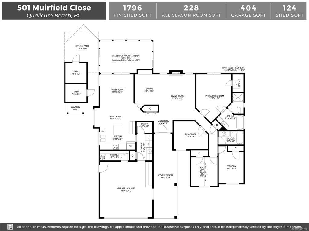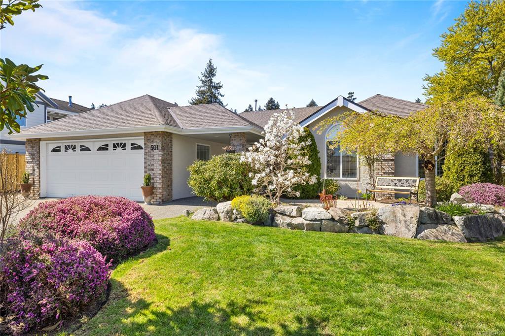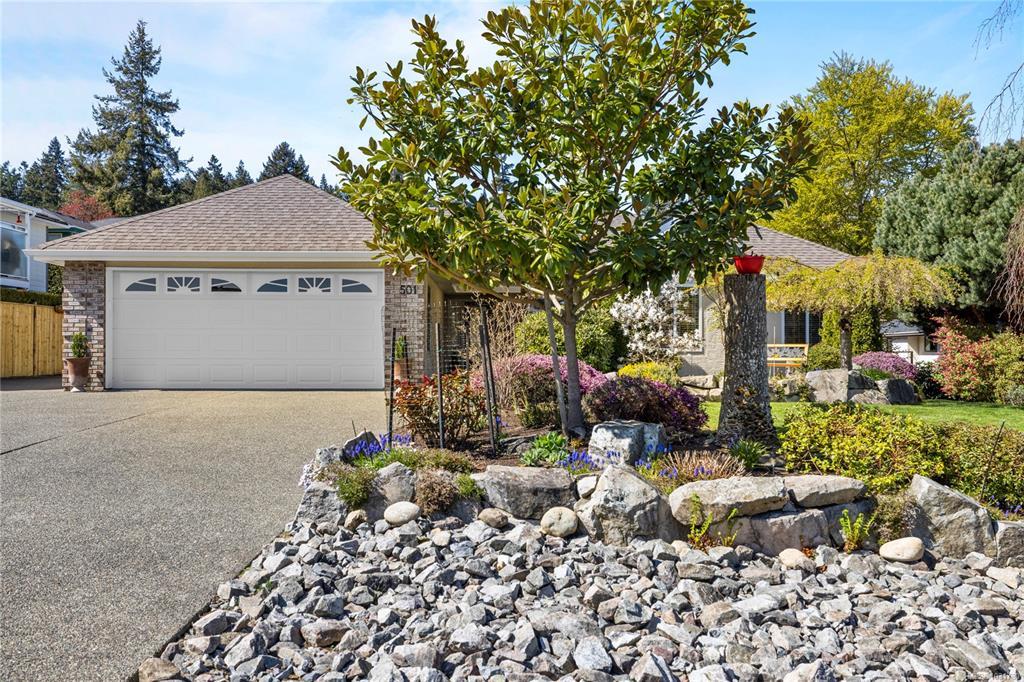 Located in the desirable Eaglecrest neighbourhood, this well-maintained and recently refreshed rancher offers comfortable single-level living with 3 bedrooms plus a den. The home features a spacious, well-laid-out kitchen with an extra storage pantry, a sunny breakfast nook & is open to the inviting family room, while an all-season room extends the living space and provides a peaceful spot to enjoy the beautifully landscaped, private garden throughout the year. The formal living and dining area offers an ideal setting for hosting family and friends. The generously sized primary suite includes a lovely ensuite with a separate tub and walk-in shower, and double doors from the bedroom let the sunshine in and open directly to the tranquil backyard. The outdoor space is a true retreat, complete with mature plantings and a soothing water feature. RV parking adds convenience, and the location places you close to golf, the beach, recreation, and the charming town of Qualicum Beach.