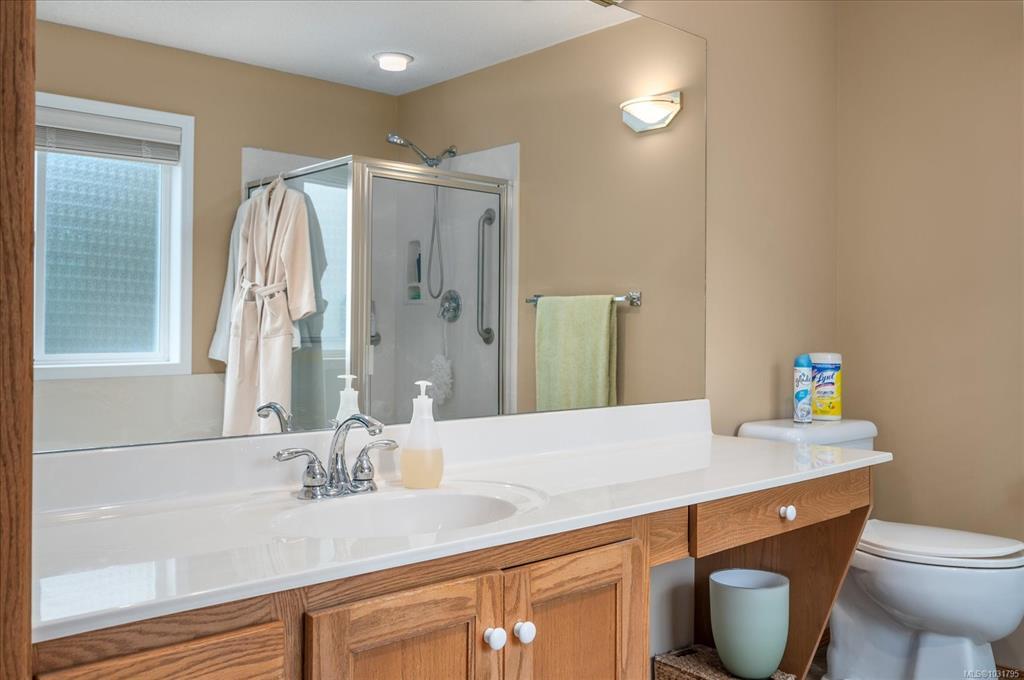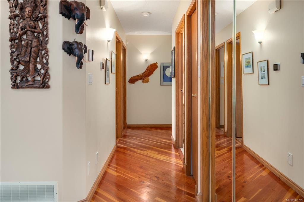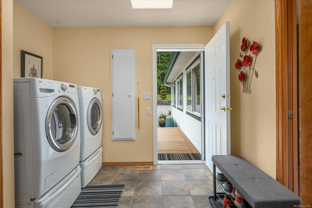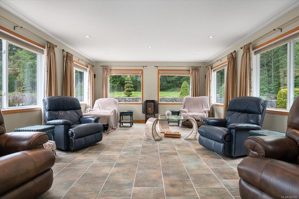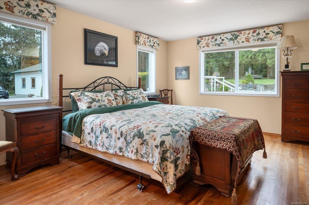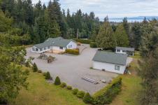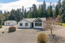 2239 sq ft custom-built home w/3-beds, 3-full baths on a 2.5-acre lot w/a 29’x27’ insulated detached workshop/garage, w/a large, sep. storage area. This well-built home features a great room w/open plan, vaulted ceilings, hardwd floors & built ins w/gas fireplace. It is flooded w/natural light from the floor to ceiling windows overlooking the distant ocean view. The chef's kitchen has hardwd floors, island w/breakfast bar & large pantry. The primary bedrm, boasts a WI closet & luxurious ensuite w/soaker tub, sep. shower & heated flooring. There is even a large sunroom/games room, w/gas FP, for entertaining. Features include vinyl siding, heat pump, propane furnace, 200-amp service, security system, BI vac, 3 skylights, newer HW tank & greenhouse. Enjoy the park-like setting from the 29'x12' deck where you can have a family BBQ on those warm summer nights. Located next to Forestry land, on a very private lot, surrounded by high end homes. A rare find only 5 mins to downtown Parksville.