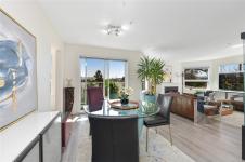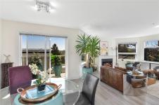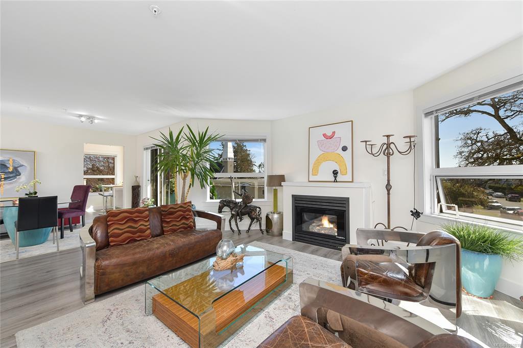 Situated in the coveted Orchard Place, a mere 1.5 blocks from bustling Beacon Ave in the heart of Sidney, lies a true gem of a condo. This impeccably crafted residence boasts 2 beds/2 baths, and unrivaled South/West exposure that floods the 1,168sf space with an abundance of natural light. Adorned with 3 balconies that span the entire length of the home, this retreat offers the perfect setting to bask in the warmth of the sun. Inside, the living area is complemented by a spacious dining nook and a separate eating area adjacent to a kitchen equipped with top-of-the-line appliances. Luxury features such as an ensuite with a walk-in shower, gas fireplace, and a storage unit, this fully remediated abode promises a lifestyle of utmost comfort and convenience. With a prime location just a 5-minute stroll from the beach, this meticulously maintained building stands as a testament to quality living. Don't miss the opportunity to experience this exquisite sanctuary-it's a delight to showcase!
