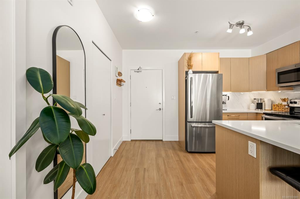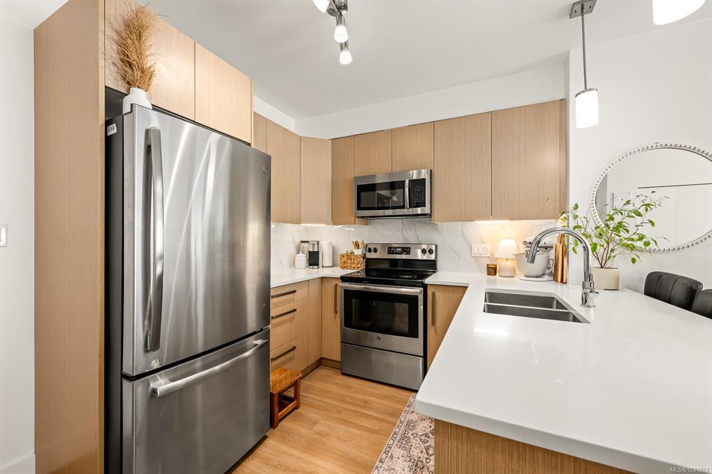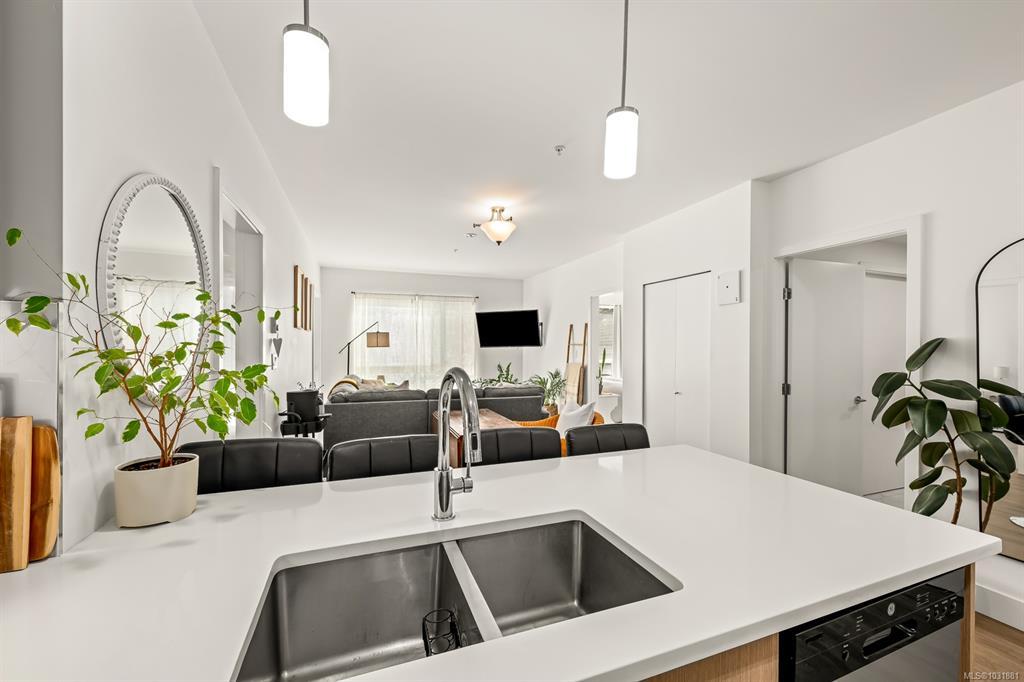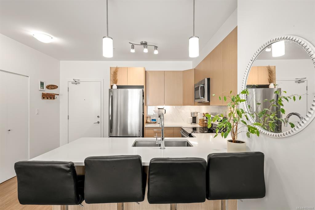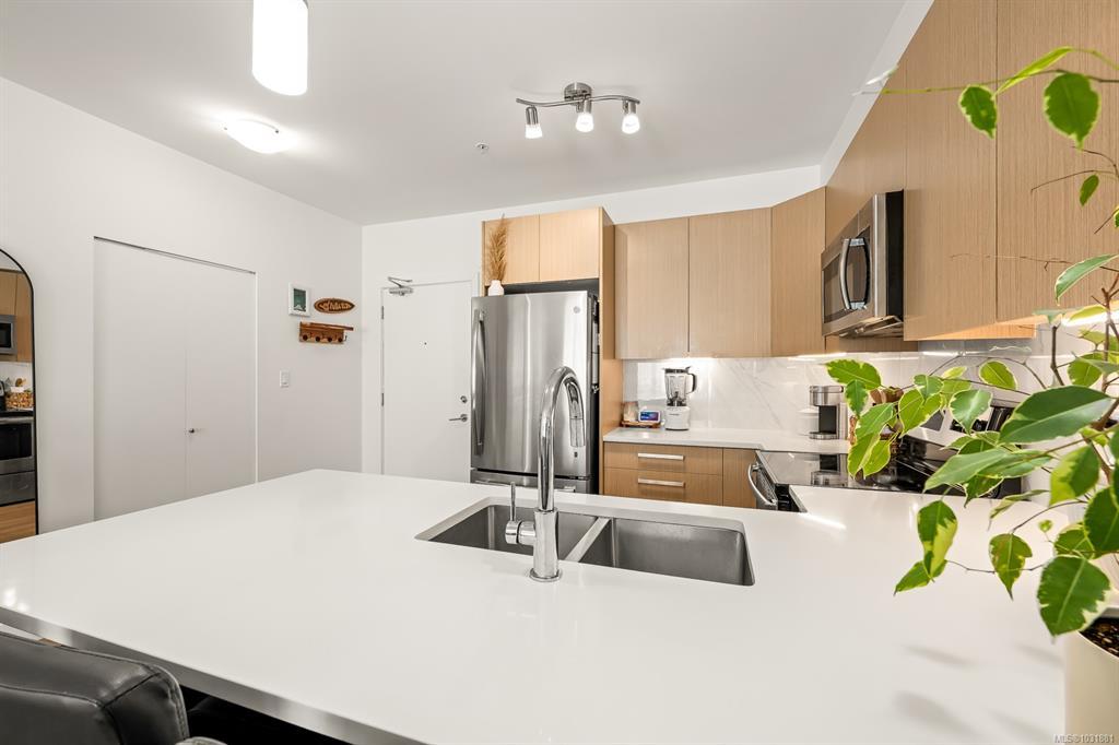 This bright and modern 2 bedroom, 2 bathroom condo offers over 900 sqft of comfortable living in a fantastic central Courtenay location. Built in 2019, the home has been well cared for by its owner and features an open concept floor plan with a stylish kitchen, stainless steel appliances, and plenty of cabinet space. The living area is filled with natural light and opens to a generous south-facing patio, perfect for enjoying the sunshine. The spacious primary bedroom includes a walk-through closet and private ensuite, while the second bedroom and full bathroom provide flexibility for guests, family, or a home office. Additional highlights include in-suite laundry, secure underground parking, and a well-managed building with modern design and elevator access. Within walking distance to shopping, restaurants, cafes, transit, this home is ideal for first-time buyers, down sizers, or investors looking for a low-maintenance property in a desirable location.