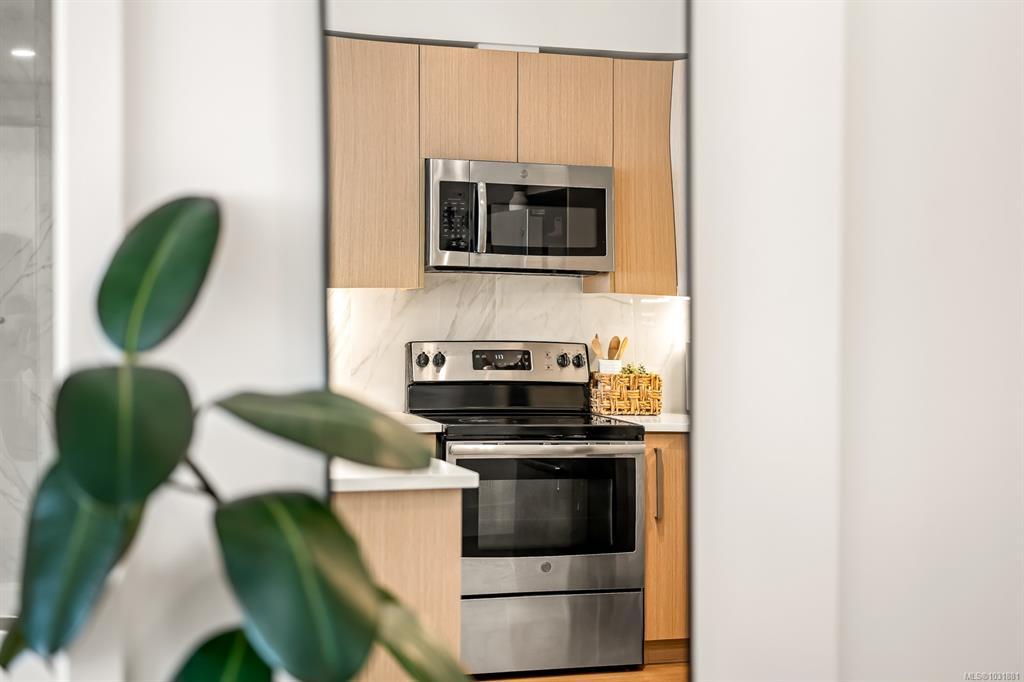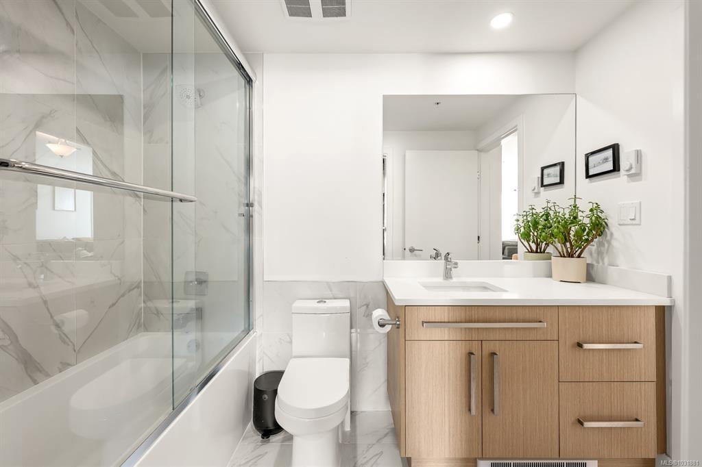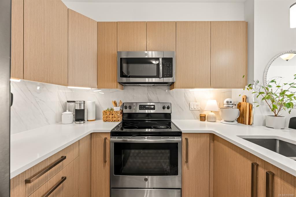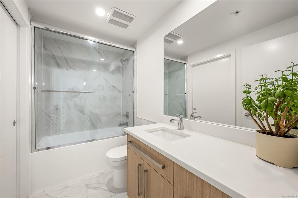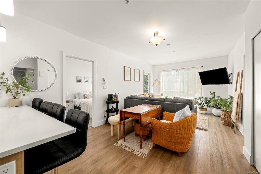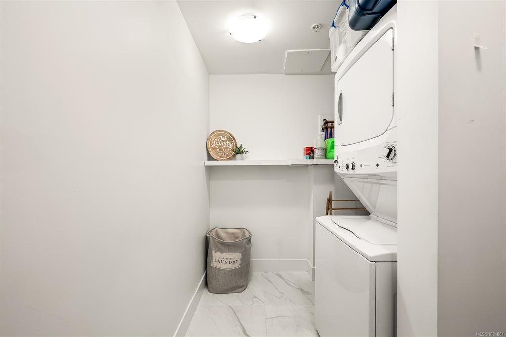 This bright and modern 2 bedroom, 2 bathroom condo offers over 900 sqft of comfortable living in a fantastic central Courtenay location. Built in 2019, the home has been well cared for by its owner and features an open concept floor plan with a stylish kitchen, stainless steel appliances, and plenty of cabinet space. The living area is filled with natural light and opens to a generous south-facing patio, perfect for enjoying the sunshine. The spacious primary bedroom includes a walk-through closet and private ensuite, while the second bedroom and full bathroom provide flexibility for guests, family, or a home office. Additional highlights include in-suite laundry, secure underground parking, and a well-managed building with modern design and elevator access. Within walking distance to shopping, restaurants, cafes, transit, this home is ideal for first-time buyers, down sizers, or investors looking for a low-maintenance property in a desirable location.