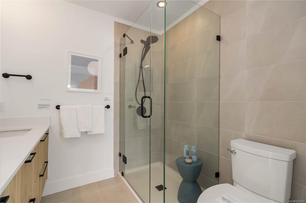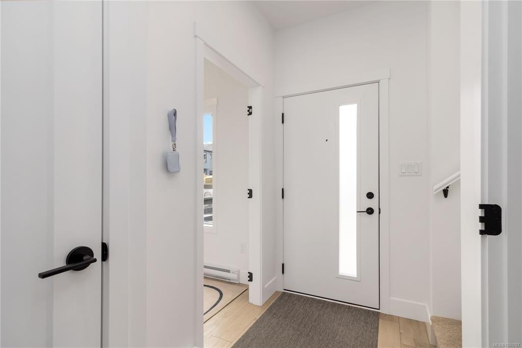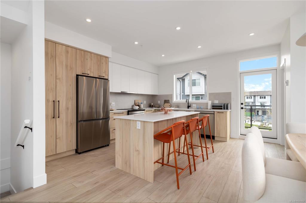 The Shoreline delivers 1,475 sq. ft. of refined living across 3levels, designed with both style & function in mind. Open-concept main impresses with 9' ceilings, a gourmet kitchen featuring modern appliances, engineered stone countertops, two-tone cabinetry, & matte black hardware — all flowing naturally into the dining area, living rm, & a spacious private balcony. Upstairs, 3 bedrooms includes a tranquil primary suite with a walk-in closet & frameless glass ensuite. Lower offers a versatile flex rm perfect for an office, gym, or guest space, plus a built-in garage. Luxury vinyl plank flooring, large-format tiled bathrooms, & ductless heat pump round out the premium finishes. Outside, professionally landscaped yard with a private patio. All just steps from Royal Bay's parks, amenities, and the oceanfront. Visit the HomeStore at 394 Tradewinds Ave, Saturday–Thursday, 12–4 pm. Price is plus GST; measurements are approximate. Photos shown are of a similar show home.