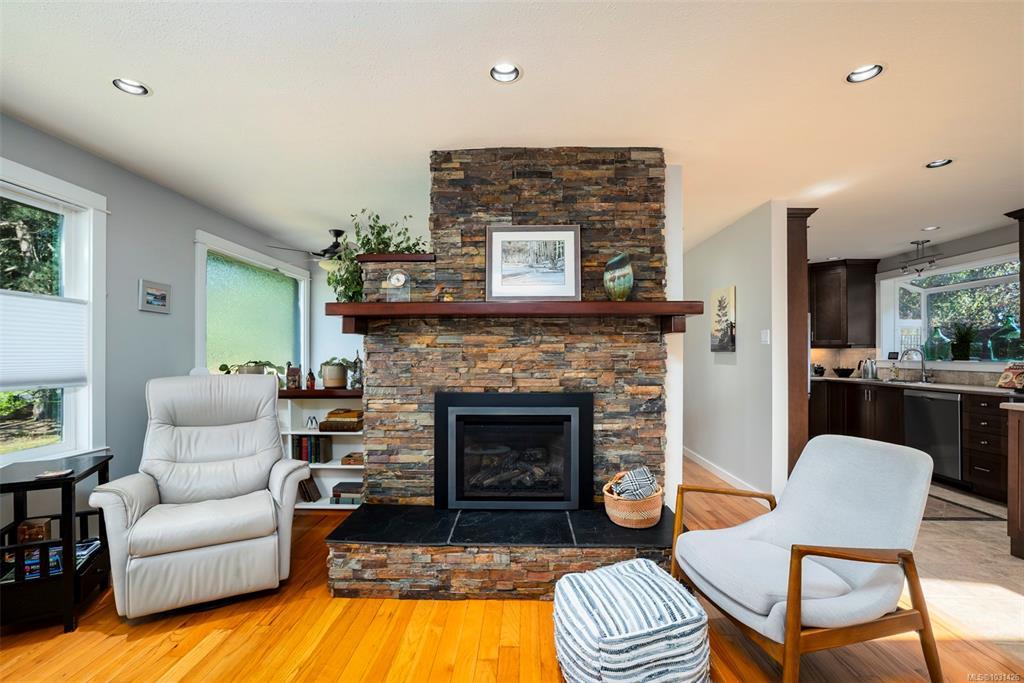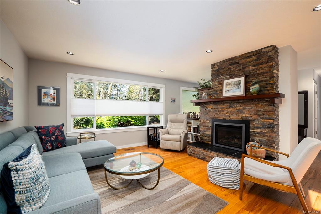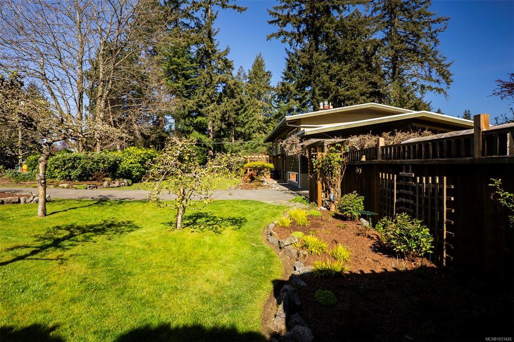 The magical feeling of Lynburn in Departure Bay. City living but feeling miles away on a park like 1/3 acre lot is this lovely mid-century, well maintained by the same owners of 37 years. With 4 bdrms & 2 baths it has been thoughtfully renovated & maintained with numerous upgrades including a newer Kitchen with S/S appliances including Fisher & Paykel gas range. Both bathrooms have been renovated incl the lower level Primary bdrm Ensuite. Lots of recessed lighting, vinyl windows, 2 cozy gas F/Ps & refinished oak floors & H/E NGas furnace. Lower family room is a great retreat for TV watching or kids play plus a utility room offers great storage. The open lower foyer with laundry makes an awesome mud room to come & go from the yard. Enjoy outside with a lovely South facing patio at the front & a large full length sundeck at the rear leading you to a stunning private Oasis w/fenced garden w/raised beds to cultivate your own harvest & 11 Rhodos just starting to open. See 3D tour