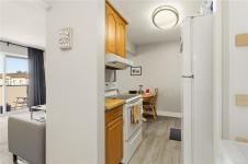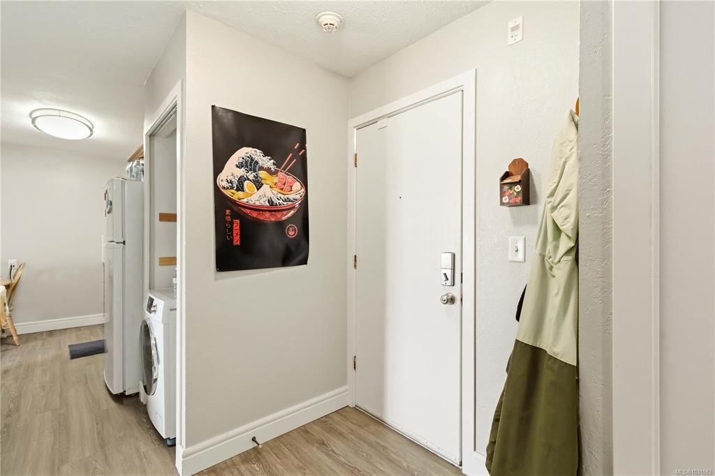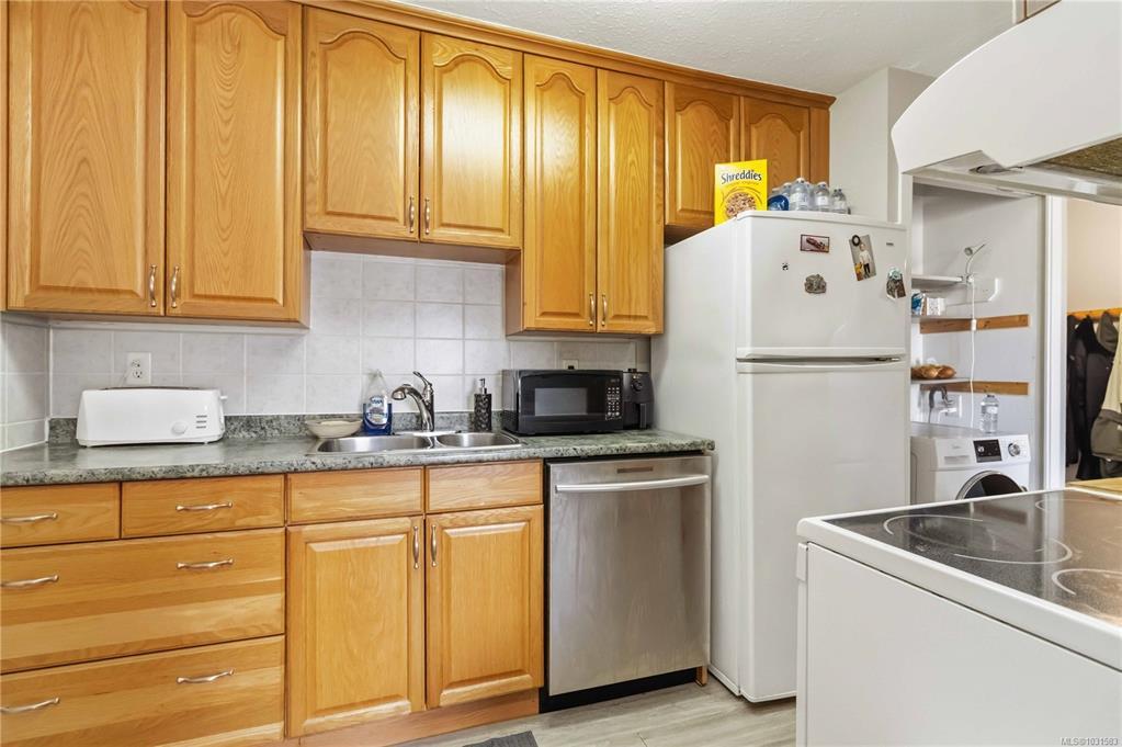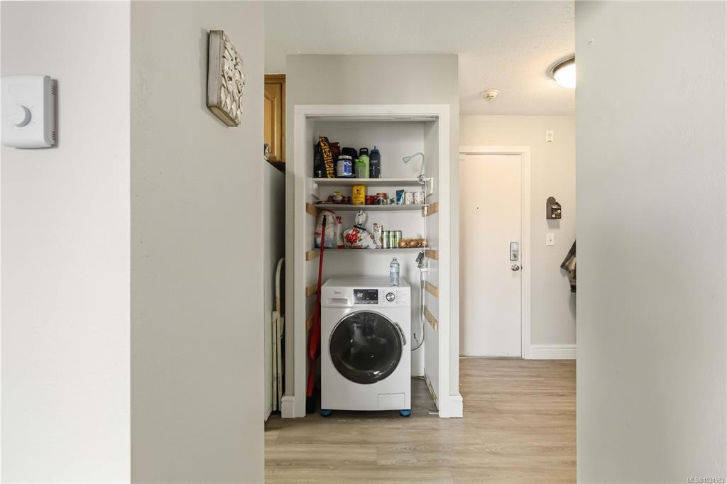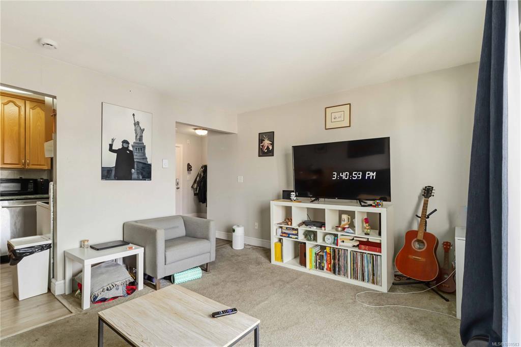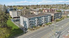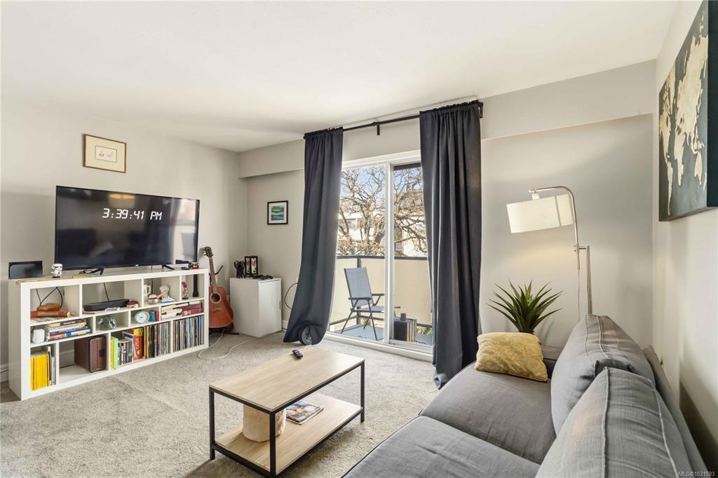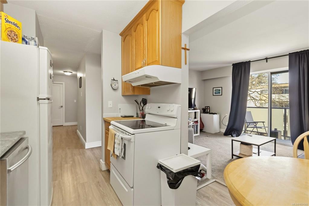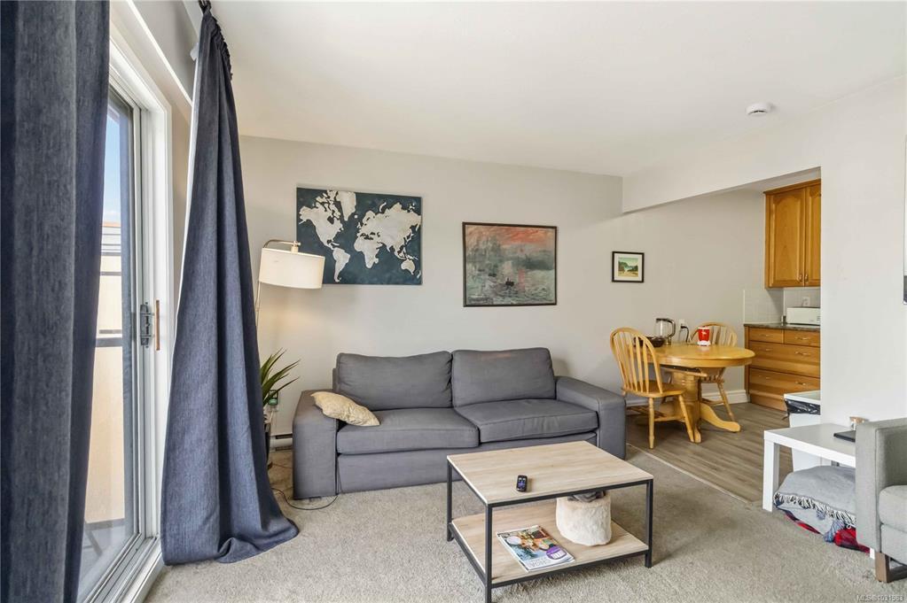TOP FLOOR & QUIET SIDE OF THE BUILDING. Welcome to this bright and well-maintained 2-bedroom, 1-bathroom condo in a highly convenient Victoria location. Situated on the quiet side of the building, this top-floor unit offers great natural light, a functional open-concept layout, and a private balcony—perfect for relaxing. The kitchen features ample cabinetry and flows seamlessly into the dining and living areas, ideal for everyday living or entertaining. Both bedrooms are well-sized, offering flexibility for guests, roommates, or a home office. In-suite laundry (Building Laundry Too), unit parking, storage locker and a well-managed strata add to the appeal. A fantastic investment opportunity or ideal home for students, with easy access to UVic, Camosun, and downtown. Just steps to Hillside Mall, transit, and parks—this is urban convenience at its best. Note: All Furniture can be included with sale!