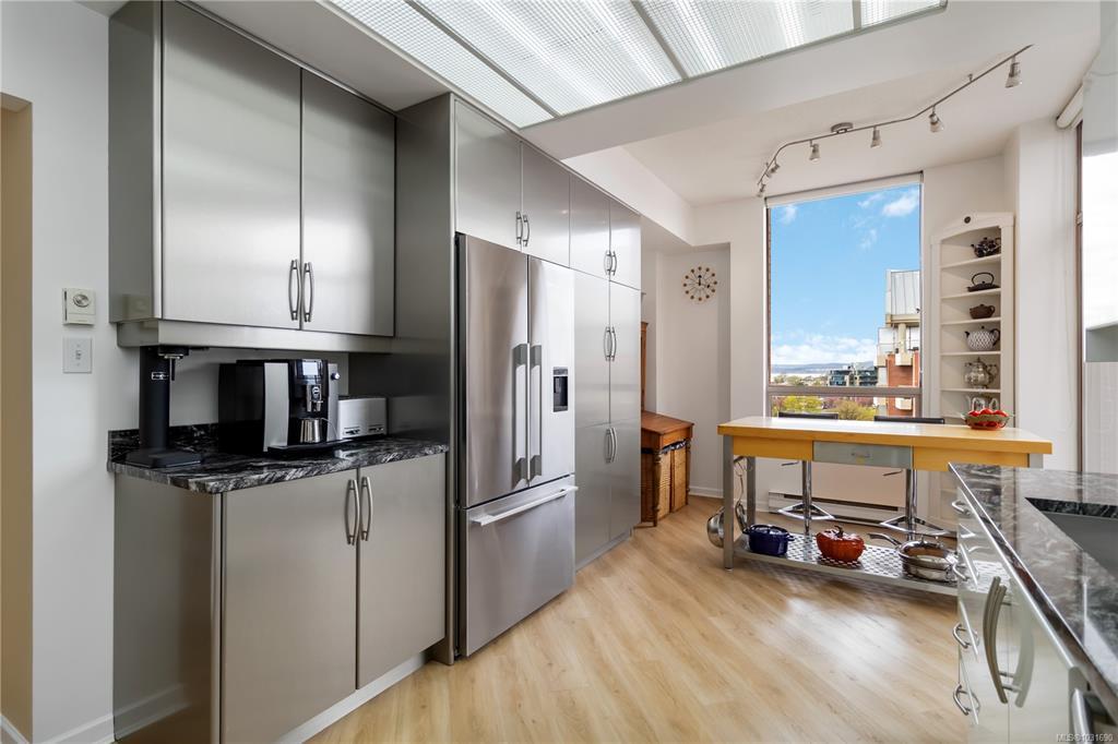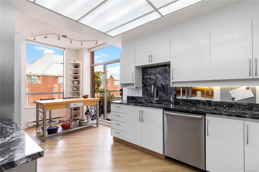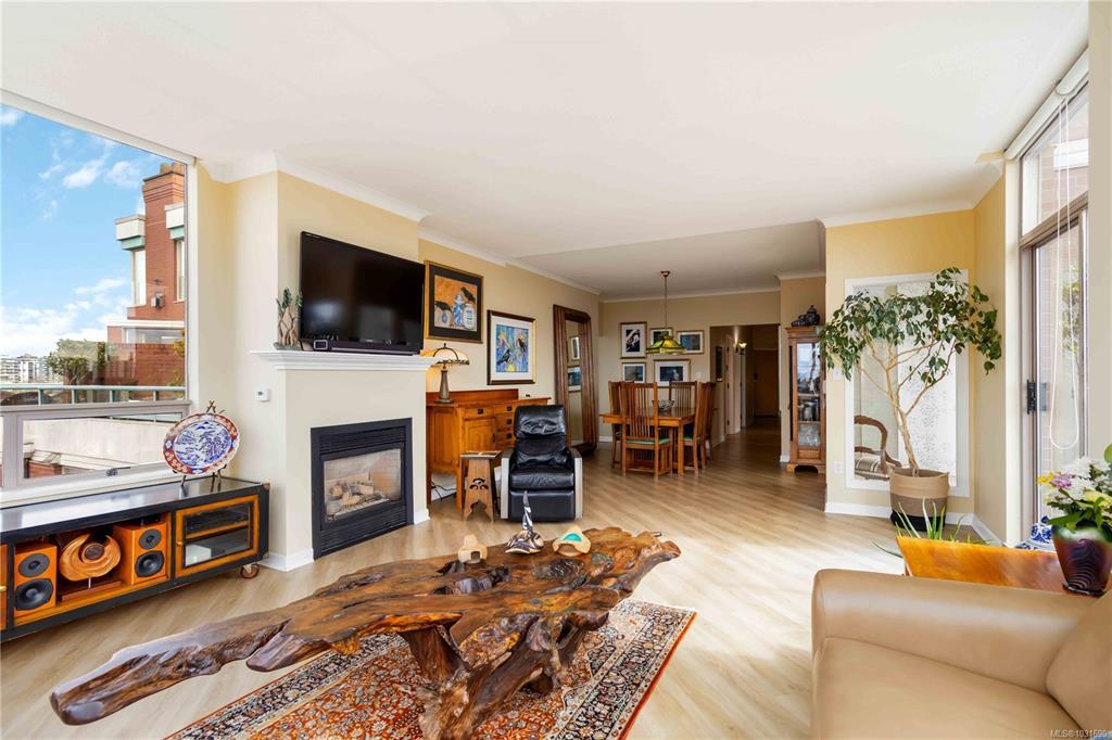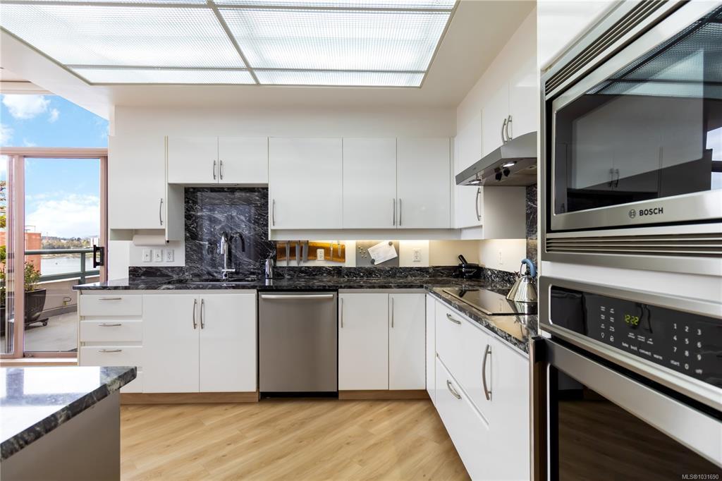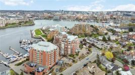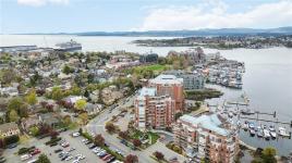 Glorious south-west facing sub-penthouse w/ breathtaking views of the snow-capped Olympic Mountains, JDF Strait, & Inner Harbour w/ 2 PARKING spots (common prop). Offering just shy of 1,700sqft, this spacious 2-bed + den, 2 bath residence showcases panoramic vistas from nearly every room, w/ natural light pouring through expansive windows & 9’ ceilings enhancing the sense of space. Thoughtfully designed for both comfort & entertaining, the open-concept layout flows seamlessly onto 2 private decks—perfect for enjoying sunsets, watching the cruise ships come in, or seaplanes land right from the comfort of home. Lovingly cared for by the current owners, this home is in excellent condition & ready for its next chapter. This is a fantastic building w/ an active strata & community. A rare opportunity to own a premier waterside sub-penthouse combining space, views, & the Victoria lifestyle.